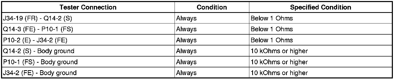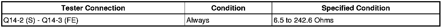 (3) Measure the resistance between the terminals 2 (S) and 3 (FE) of connector according to the value(s) in the table below.