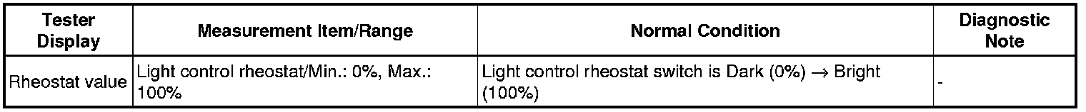 - The meter CPU detects the illumination level selected by the user according to the position of the rheostat knob.