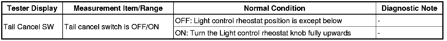 6. READ VALUE USING TECHSTREAM (TAIL CANCEL SW)