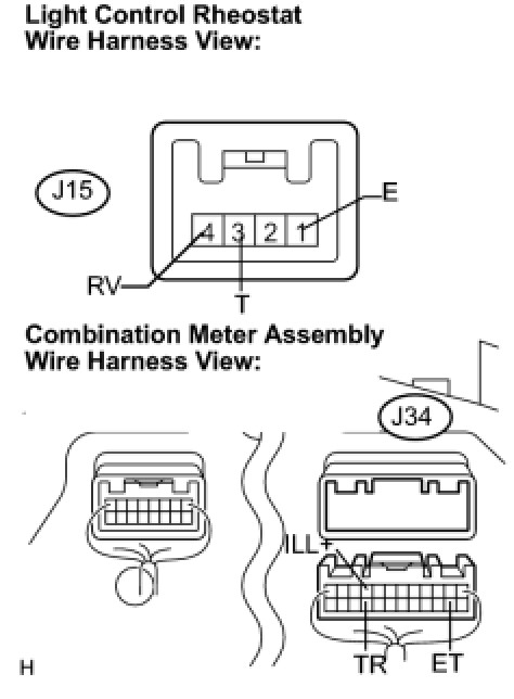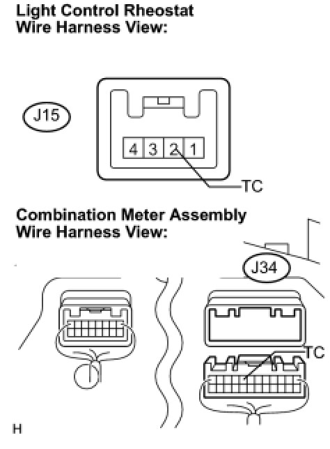 5. CHECK HARNESS AND CONNECTOR (COMBINATION METER - LIGHT CONTROL RHEOSTAT)