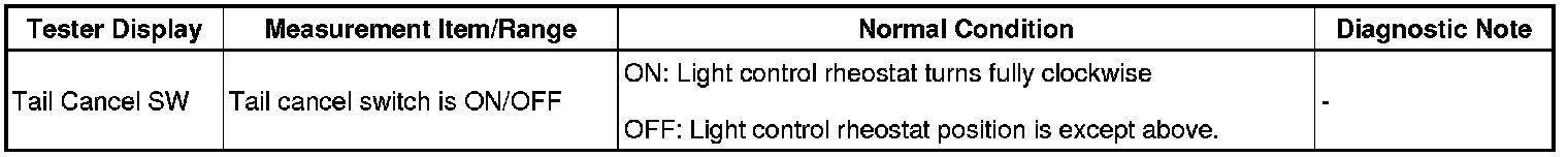 3. READ VALUE USING TECHSTREAM (TAIL CANCEL SW)