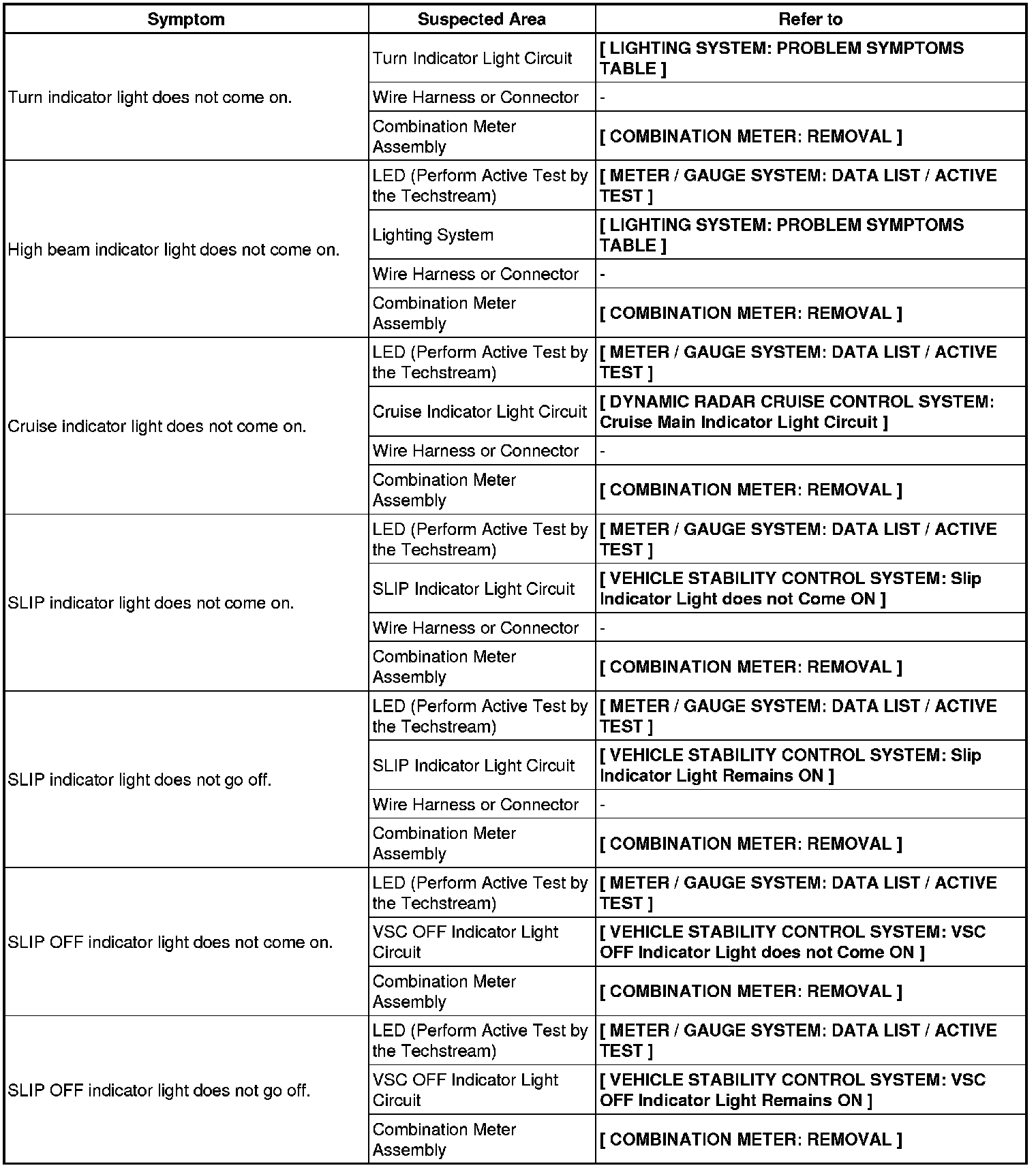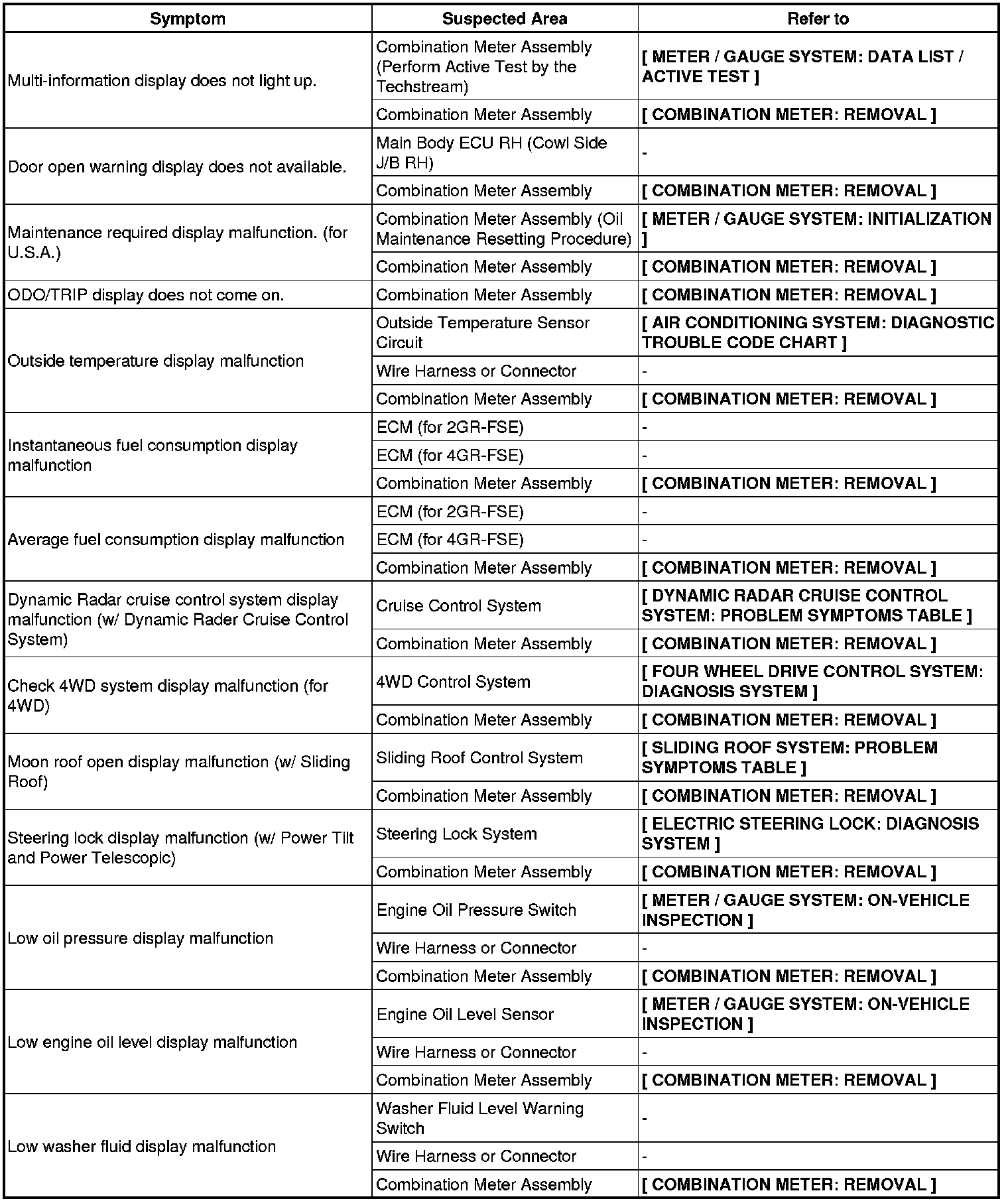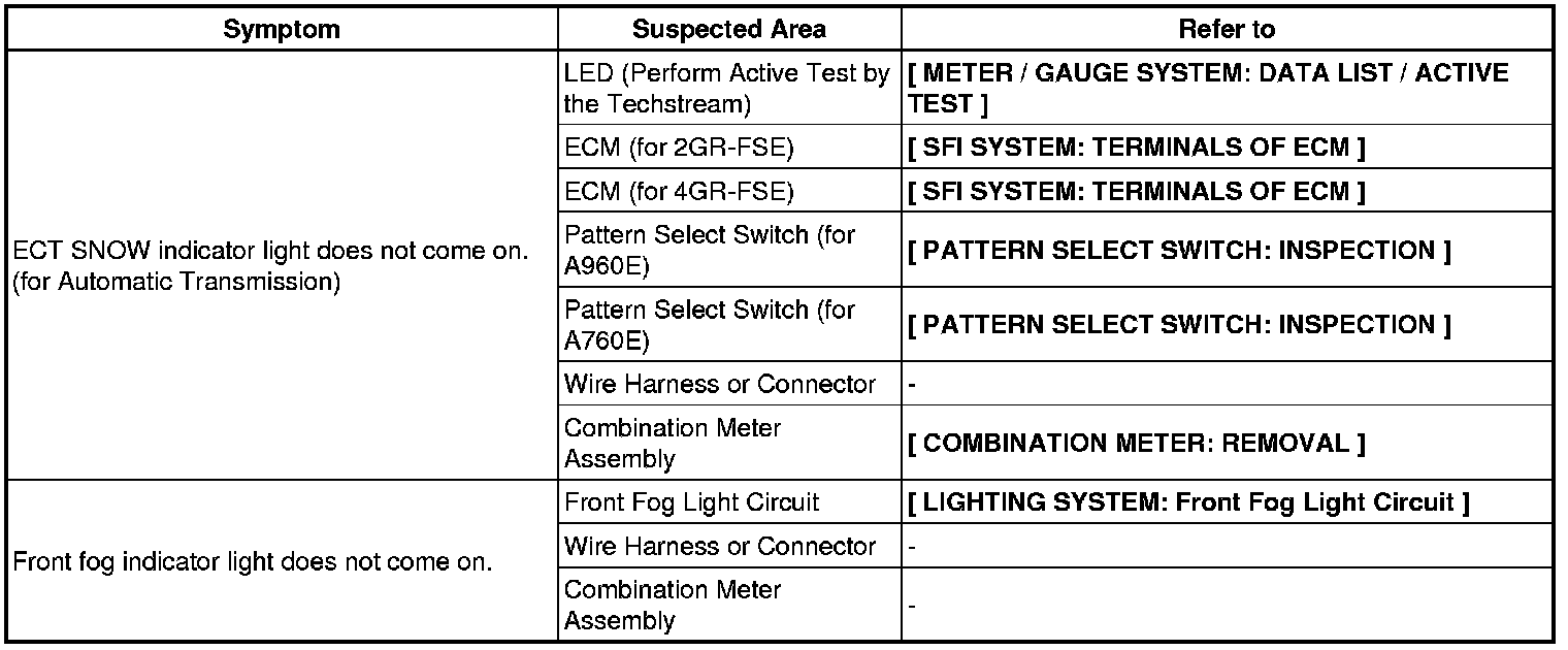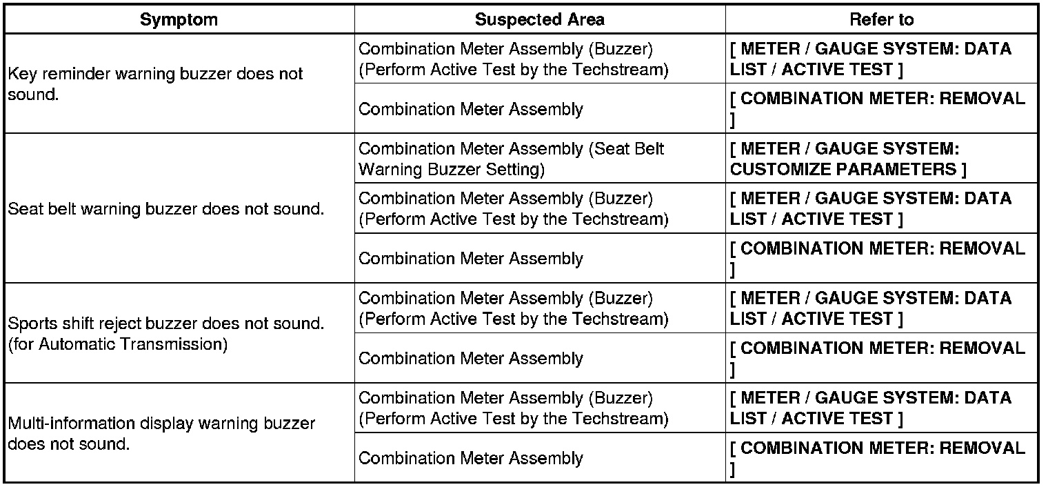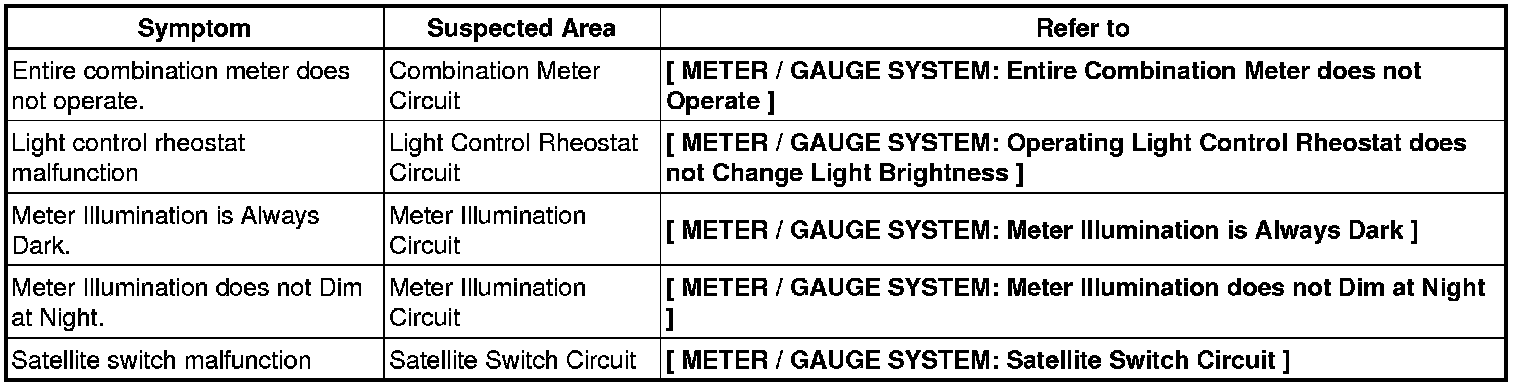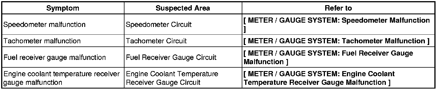 METER: METER / GAUGE SYSTEM: PROBLEM SYMPTOMS TABLE