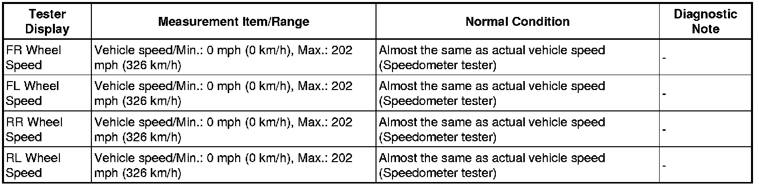 NG -- READ VALUE USING TECHSTREAM (FL/FR/RL/RR WHEEL SPEED)