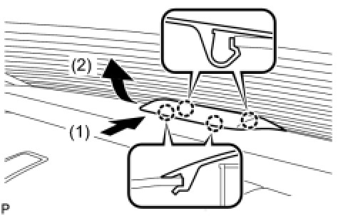 (a) Disengage the 4 claws and disconnect the high mounted stop light set as shown in the illustration.