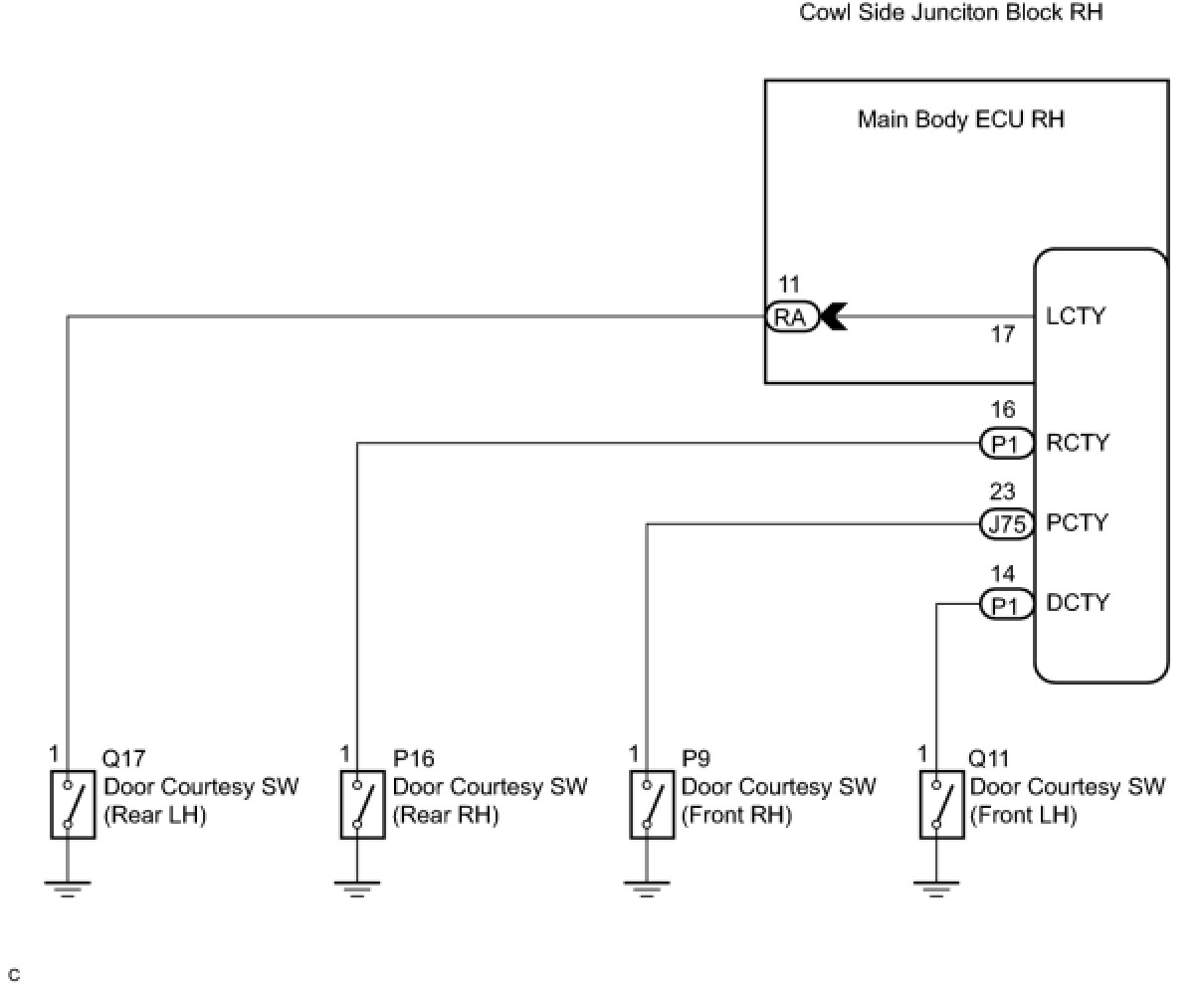 C -- INSPECT DOOR COURTESY SWITCH (FRONT RH)
