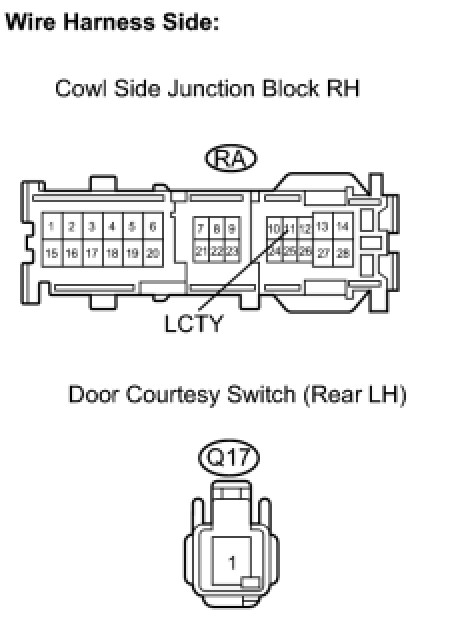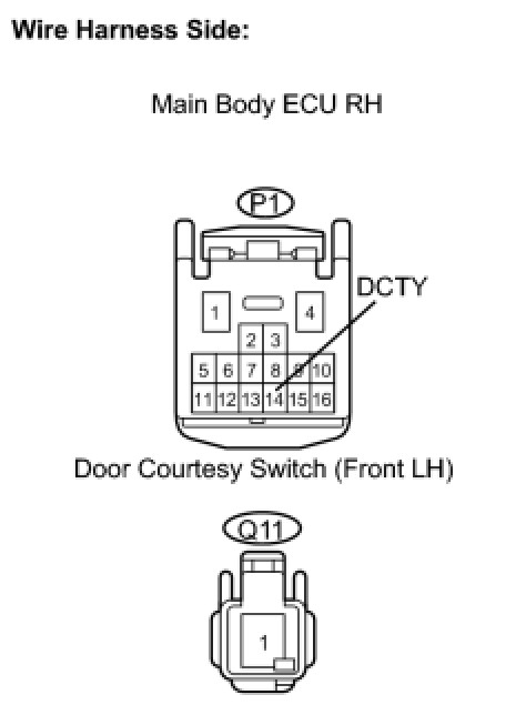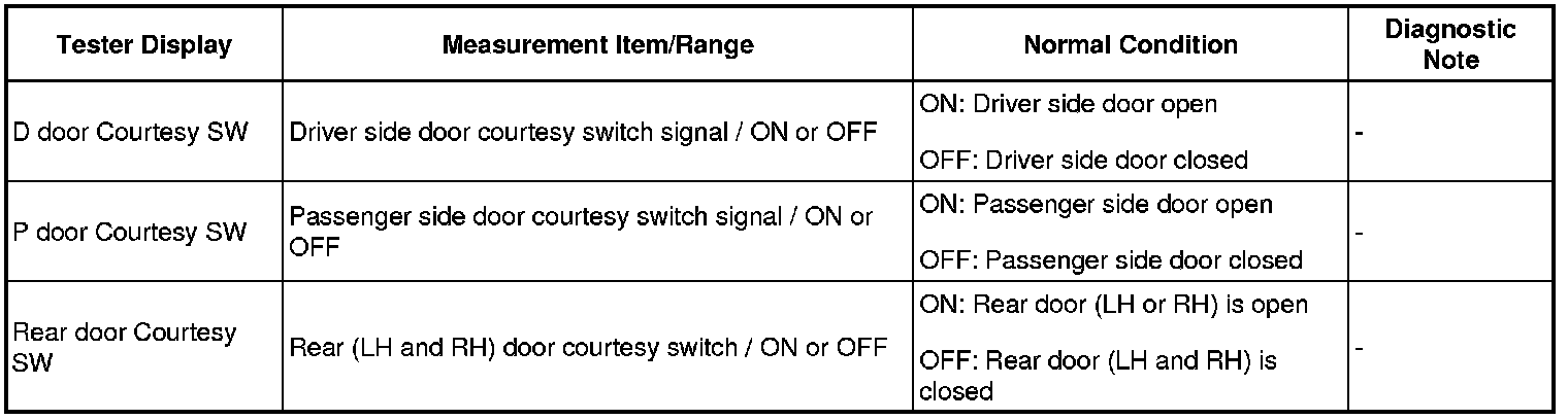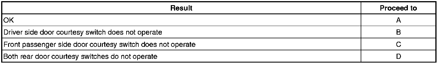 The procedure is the same for each door courtesy switch circuit. First, inspect the suspected door courtesy switch circuit.