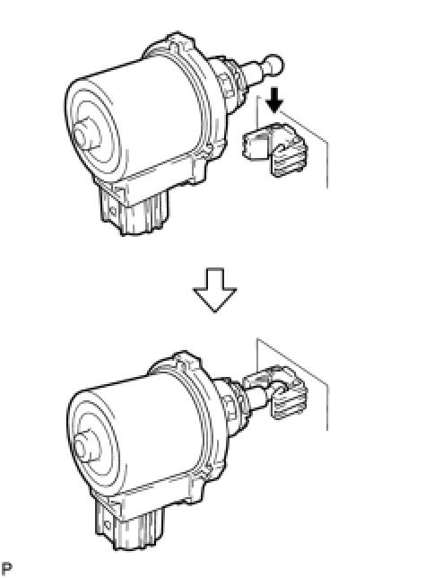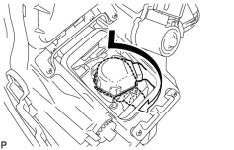 (b) Turn the headlight leveling motor in the direction indicated by the arrow in the illustration to install it.