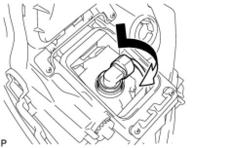(b) Turn the light control ECU socket in the direction indicated by the arrow in the illustration to connect it.