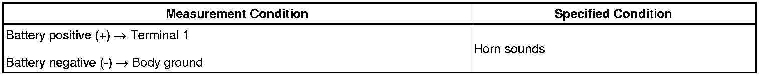 Apply battery voltage and check operation of the horn, as shown in the table below.