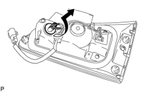 (a) Turn the back up light bulb and the rear light socket and wire in the direction indicated by the arrow and remove them as a unit.