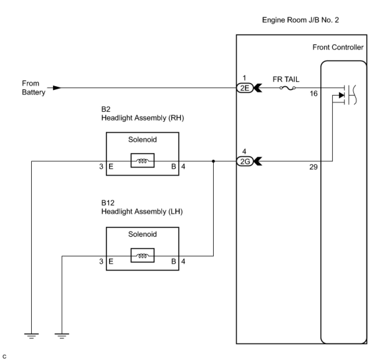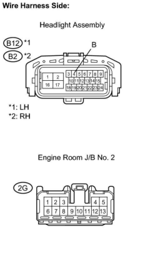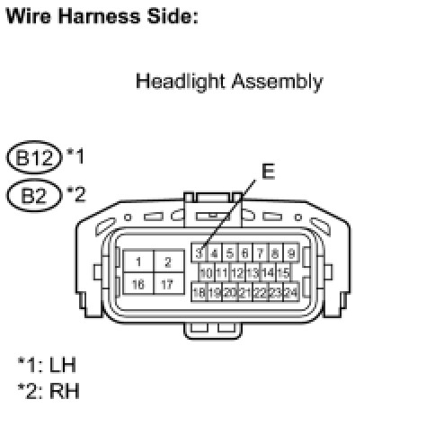 (a) Disconnect the B2 or B12 headlight assembly connector.