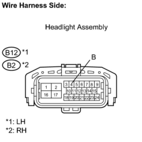 (b) Disconnect the B2 or B12 headlight assembly connector.