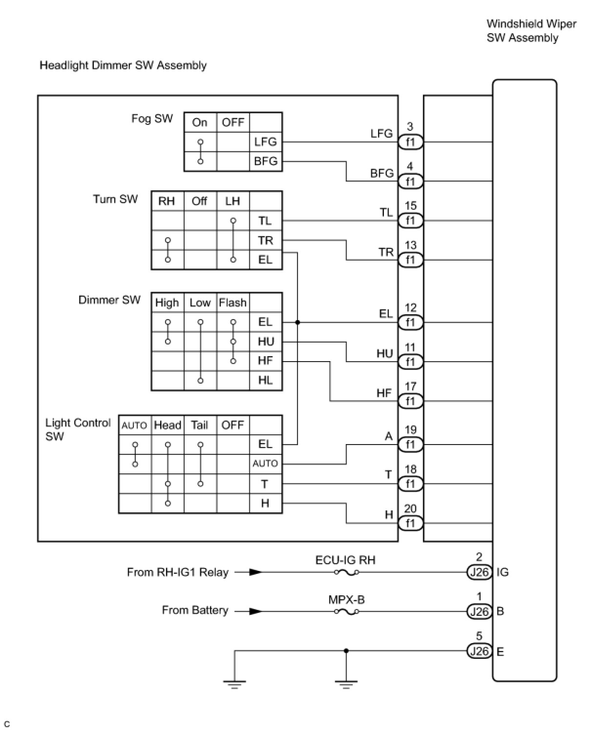 (a) Disconnect the J26 windshield wiper switch assembly connector.