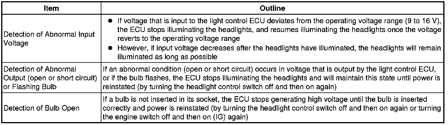 The light control ECU executes the fail-safe actions listed below in accordance with the item that has been detected.
