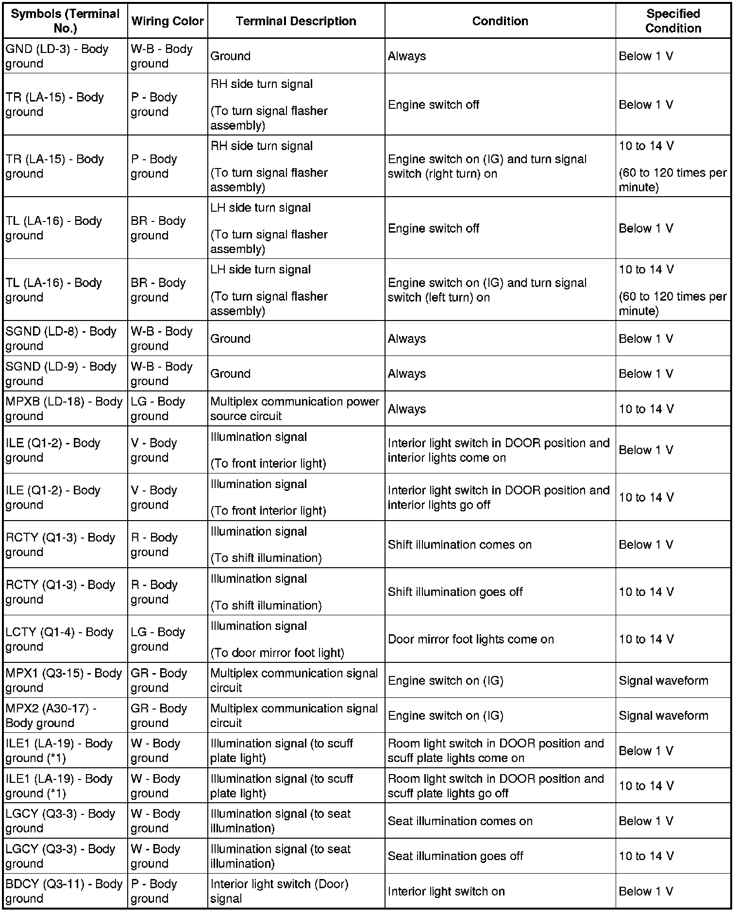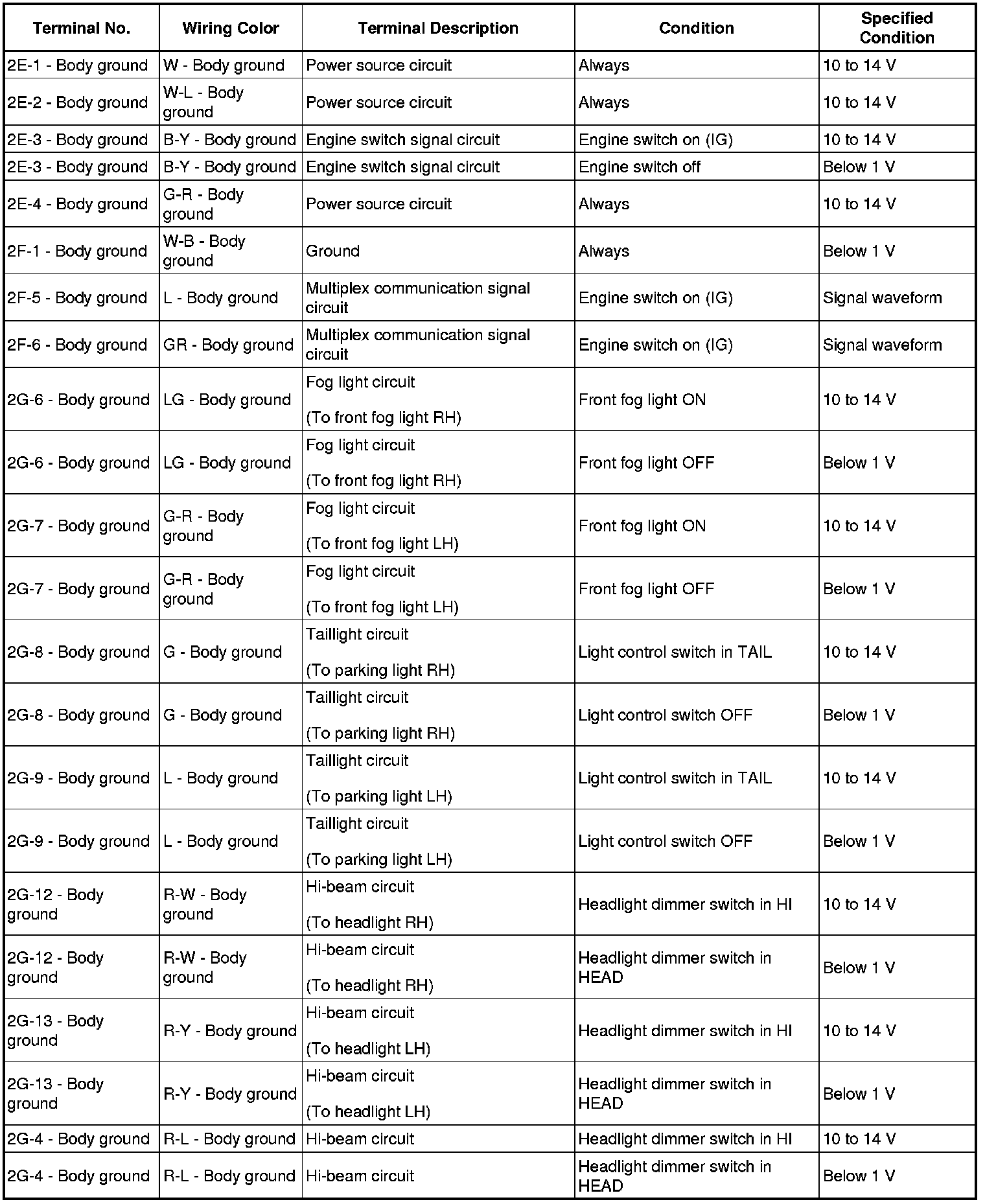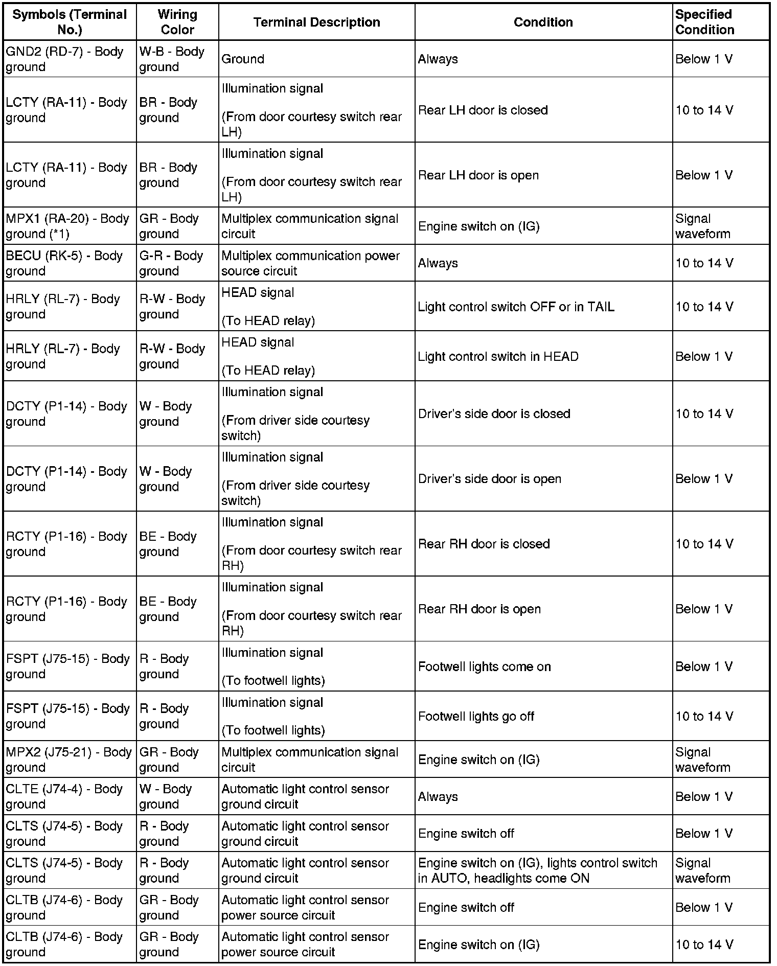 LIGHTING: LIGHTING SYSTEM: TERMINALS OF ECU