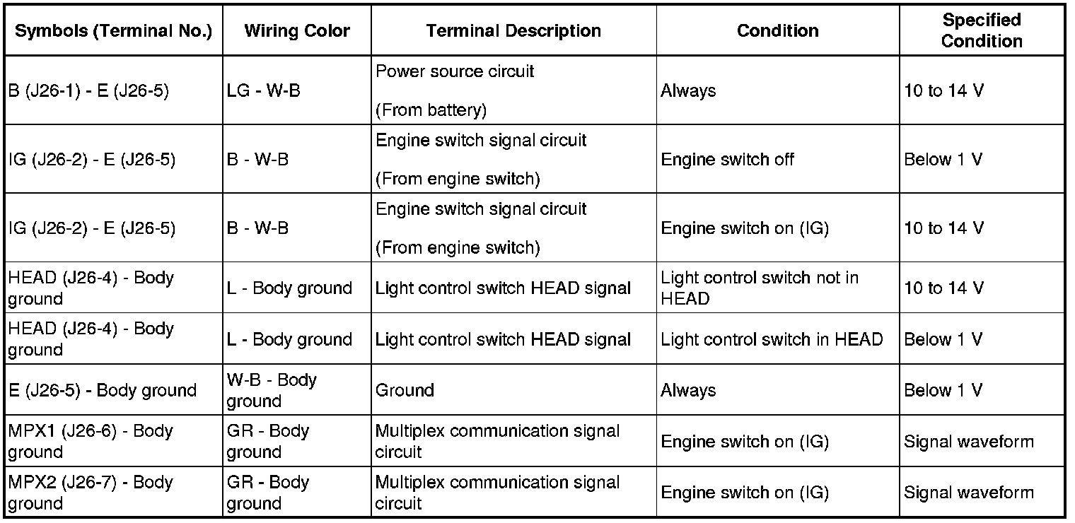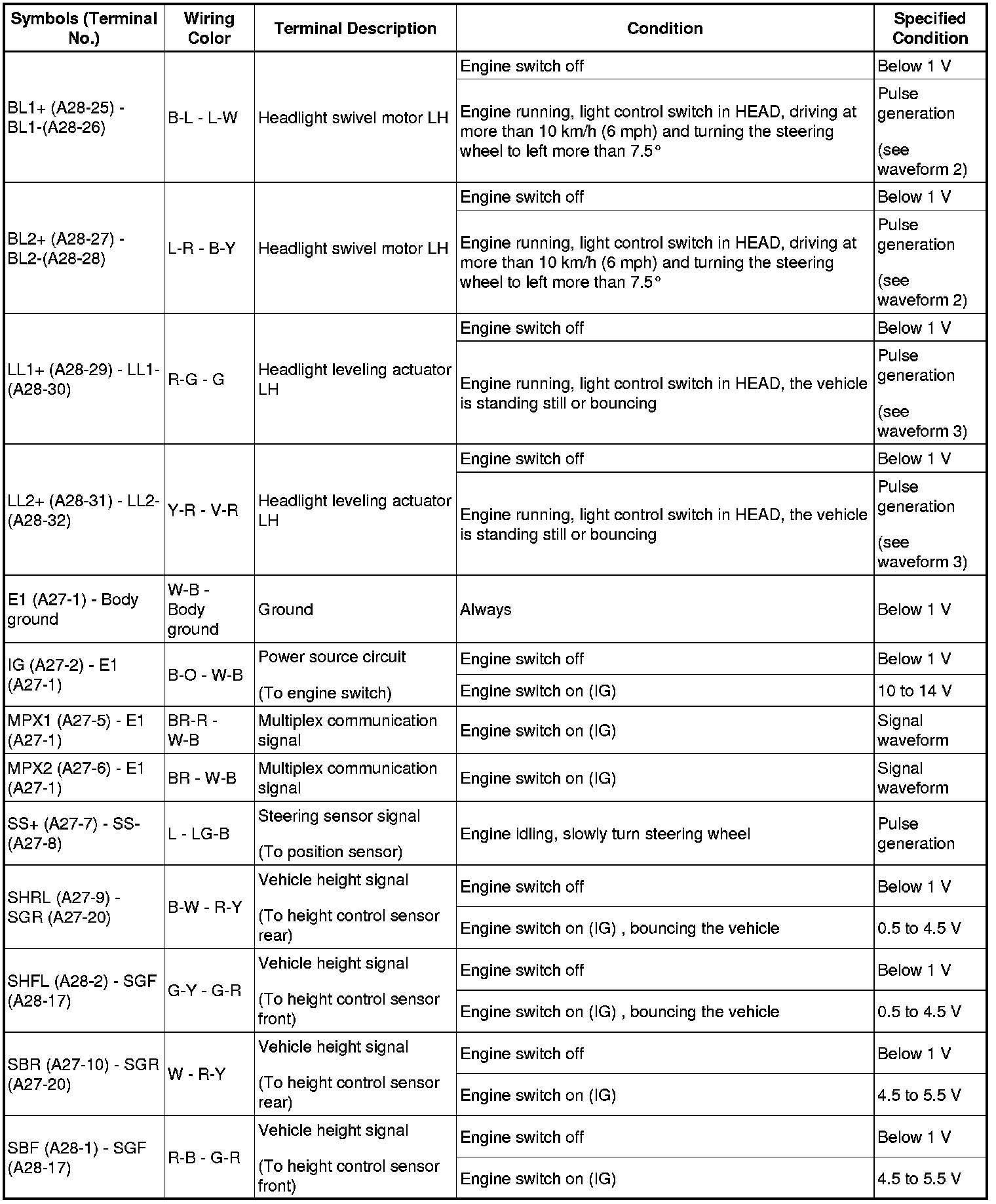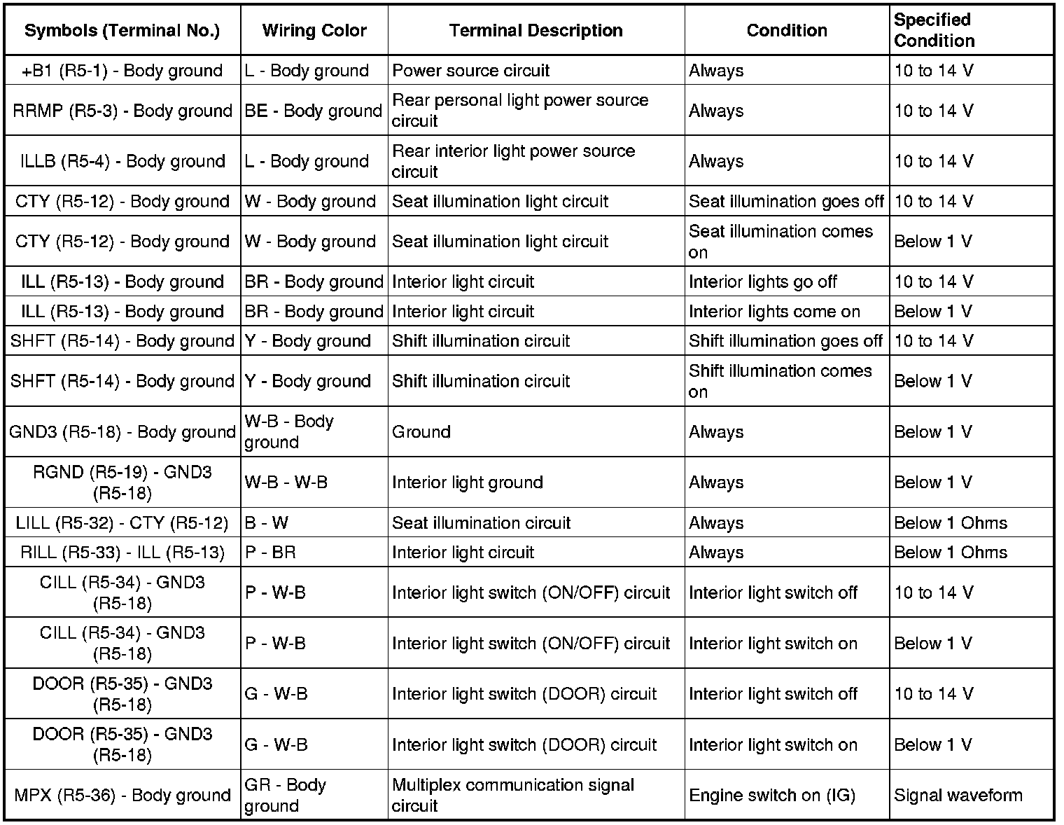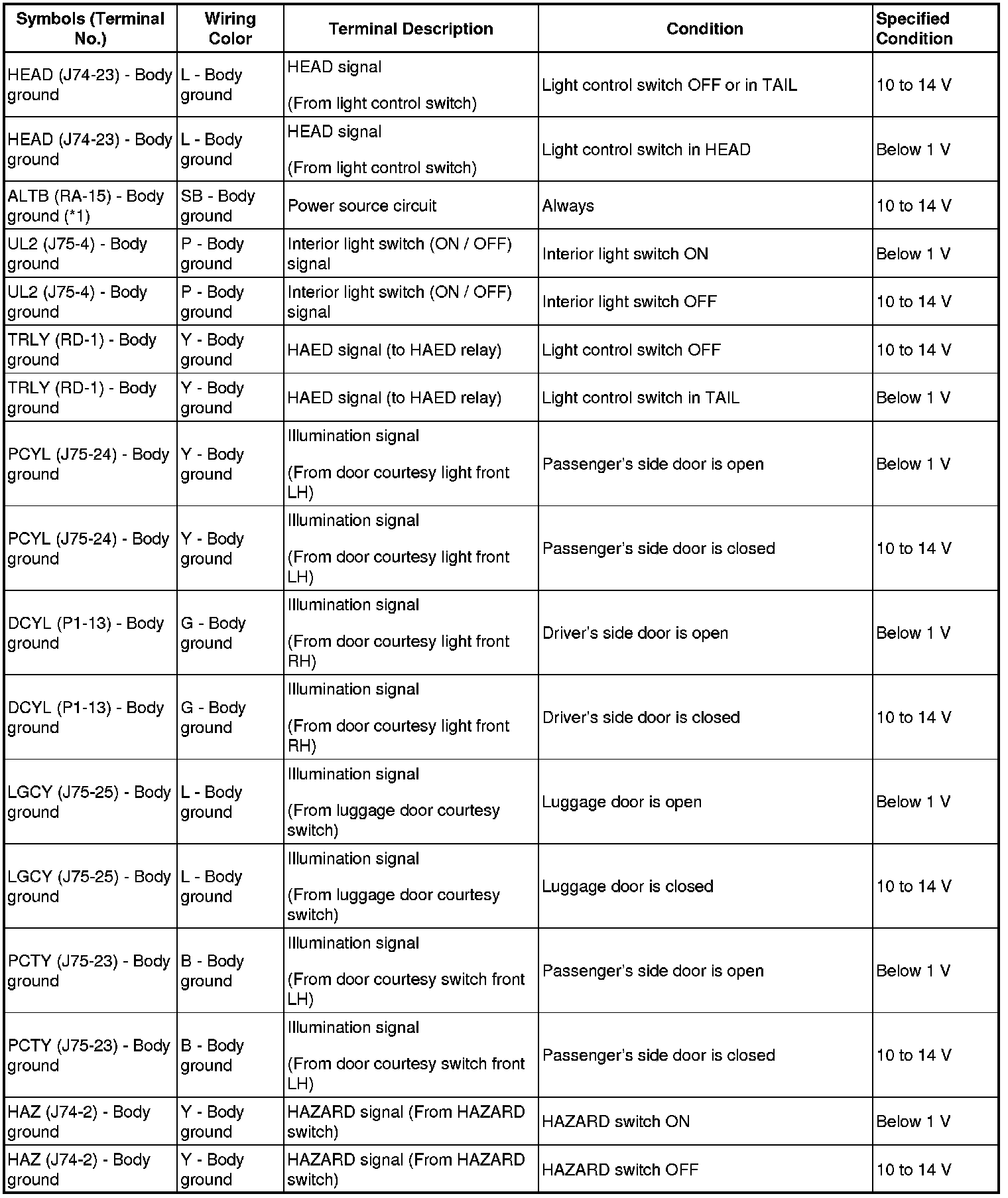 LIGHTING: LIGHTING SYSTEM: TERMINALS OF ECU