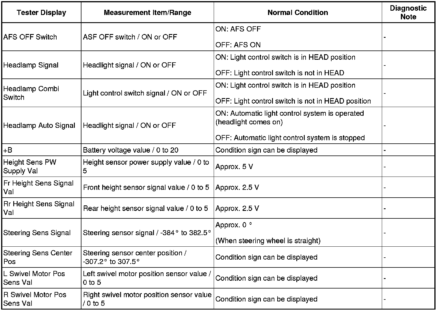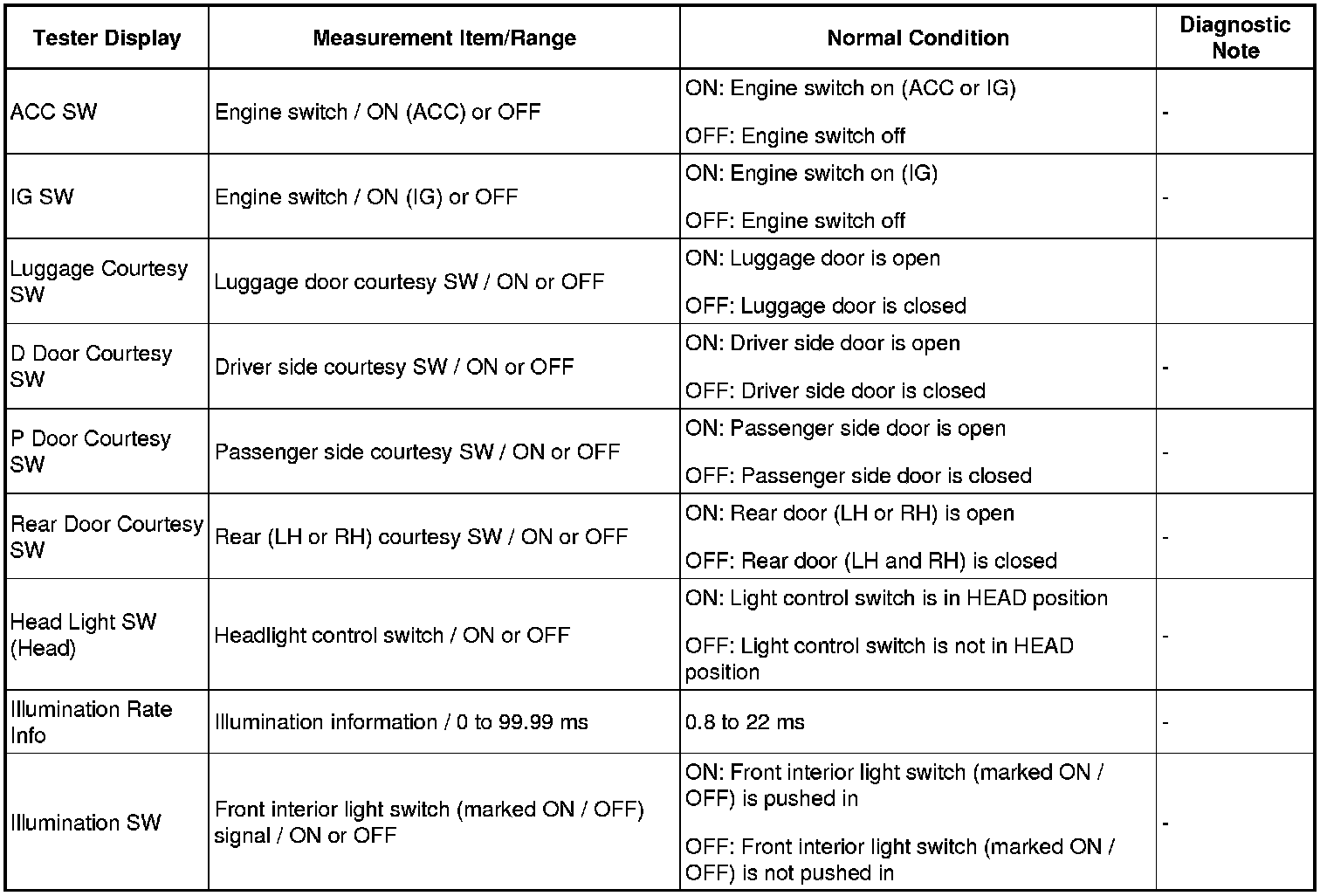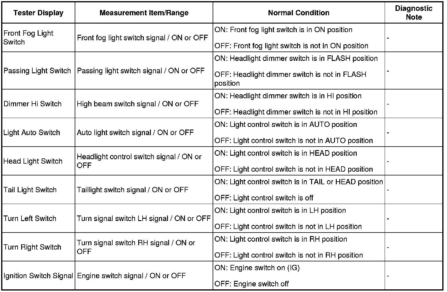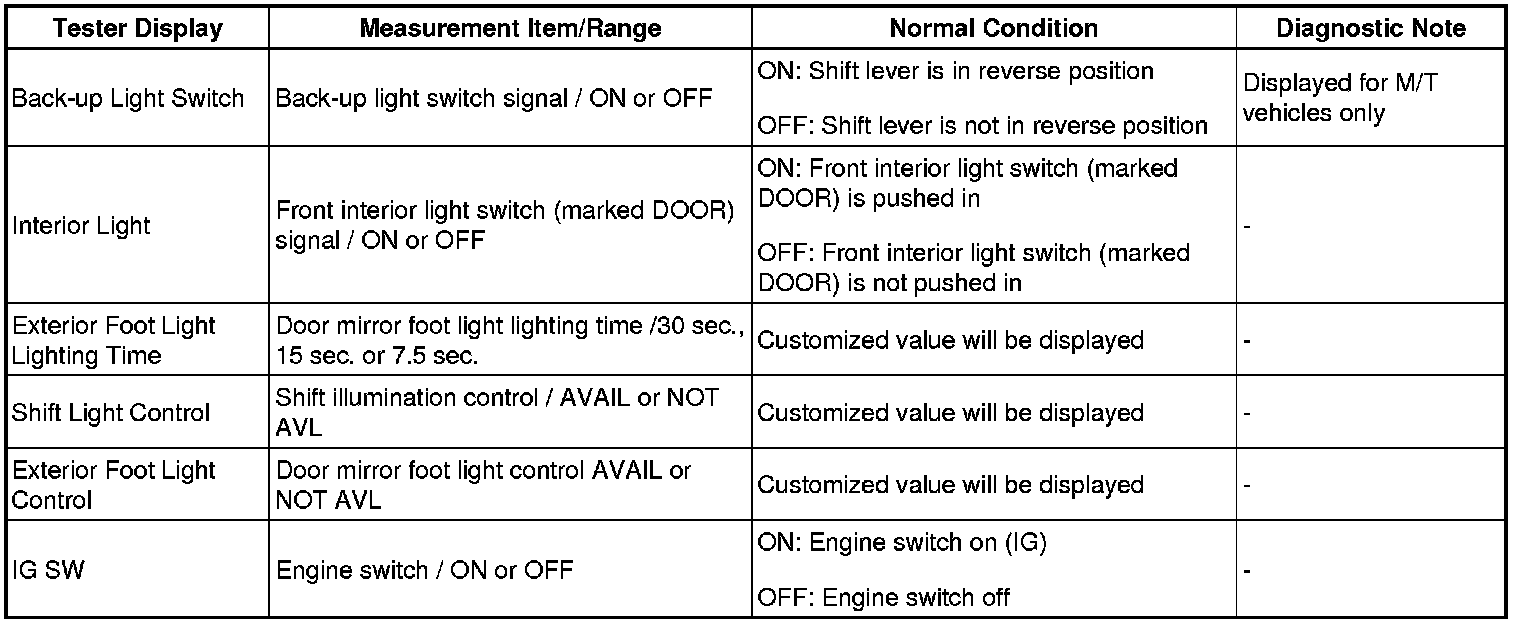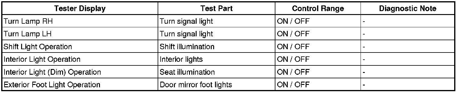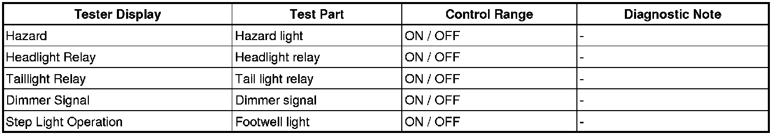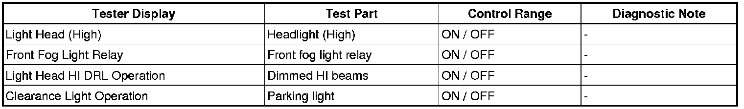 LIGHTING: LIGHTING SYSTEM: DATA LIST / ACTIVE TEST