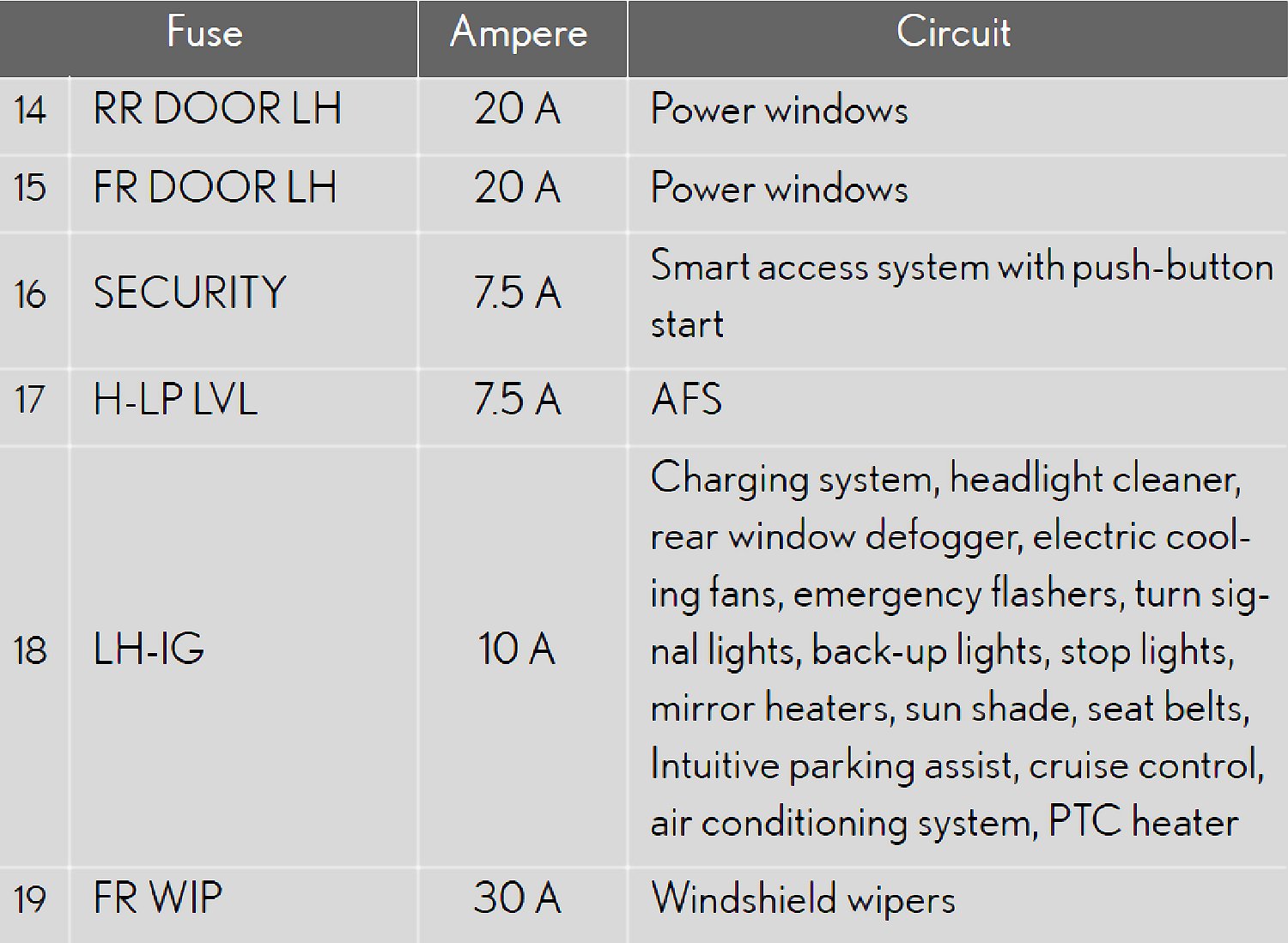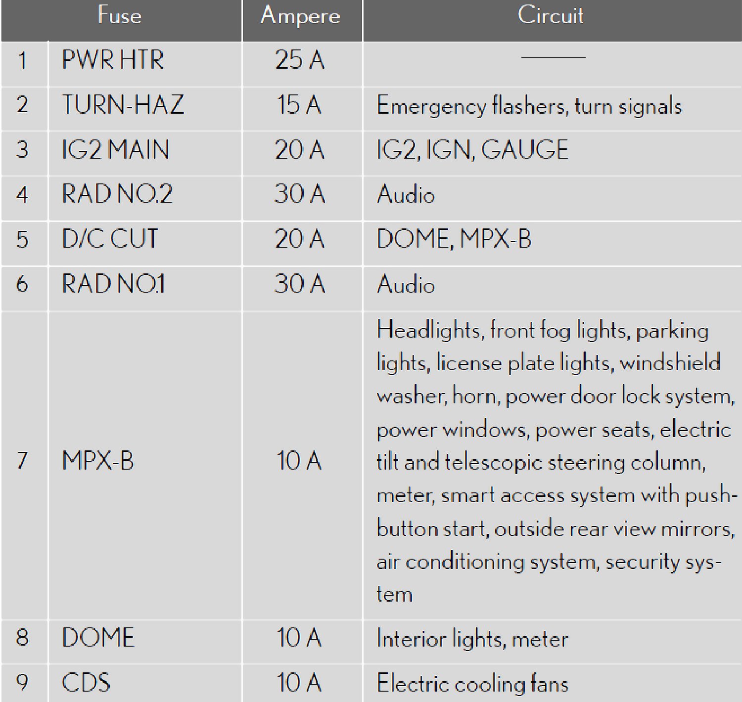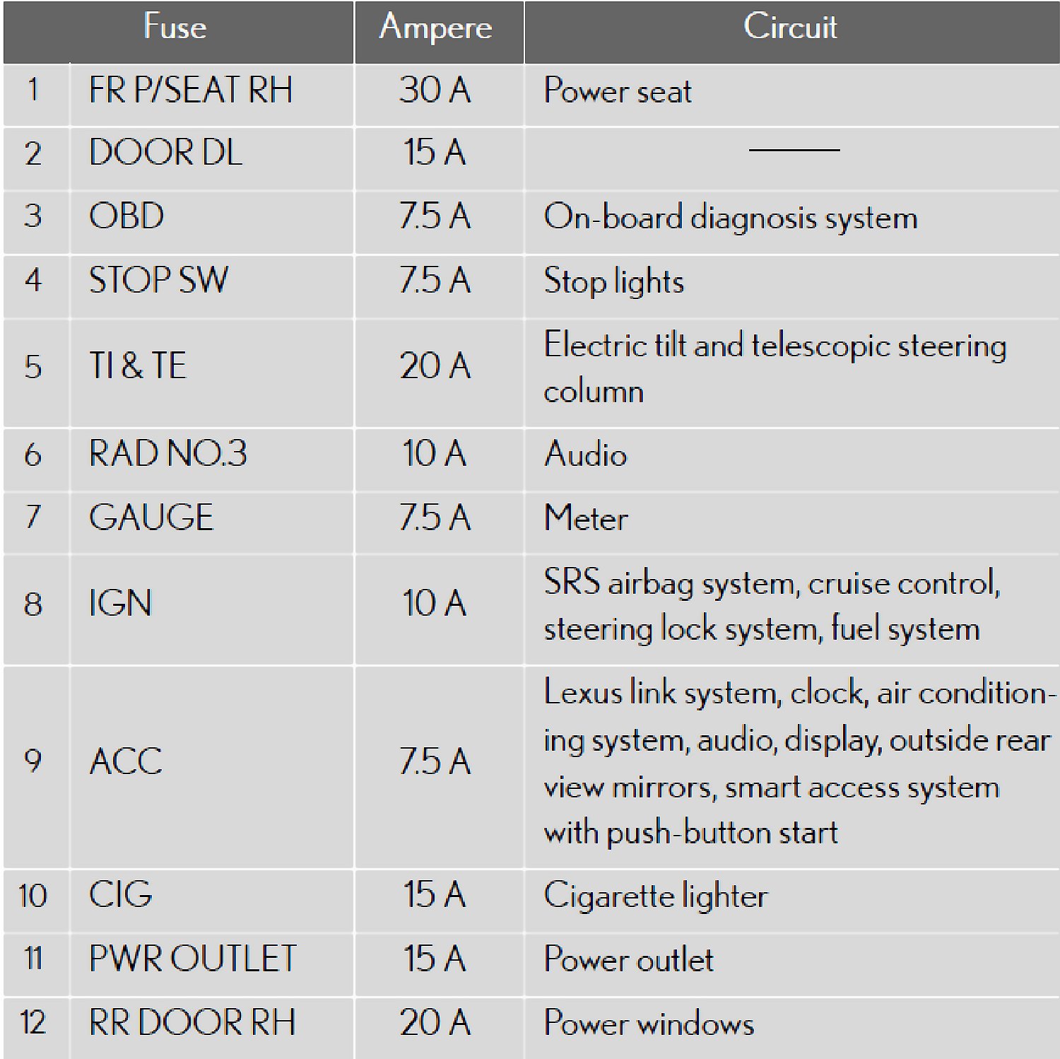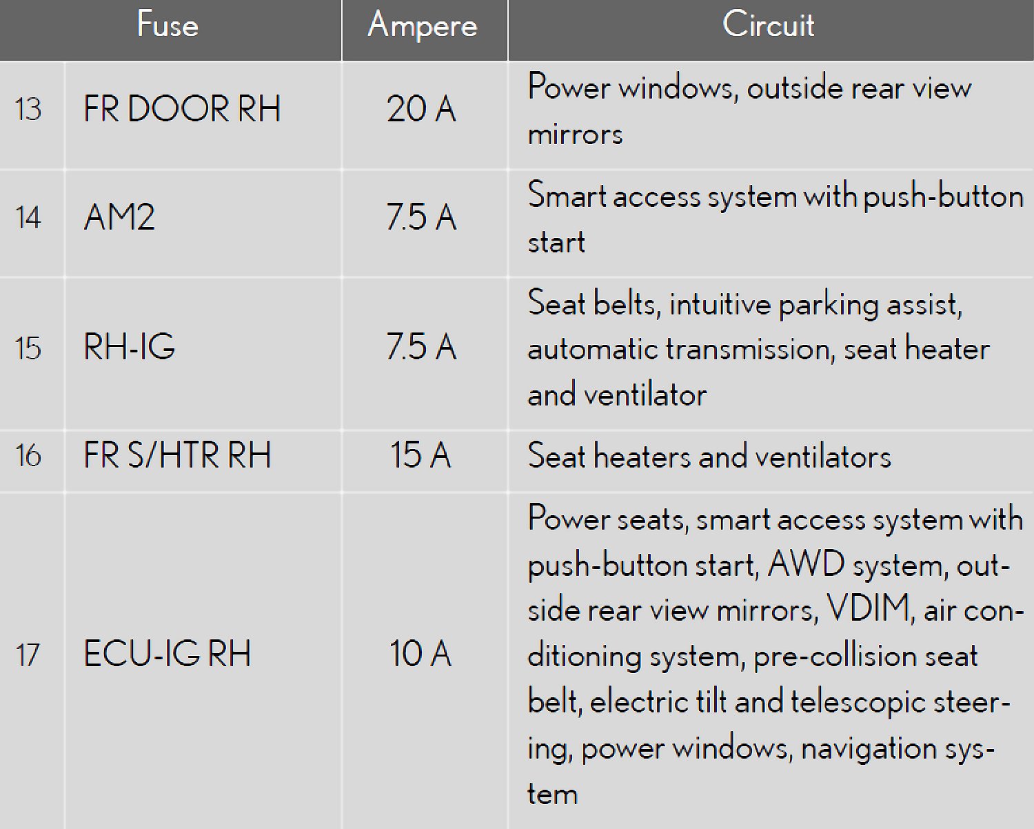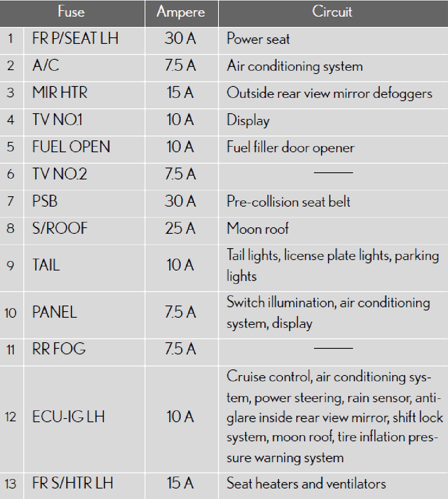 Fuse Location - Passenger's Side Instrument Panel: