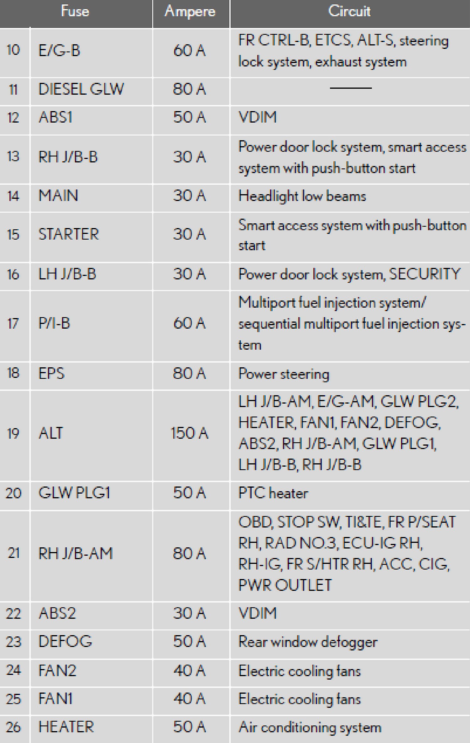 Fuse Layout and Amperage RatingsFuse Block Location - Engine Compartment (Type A):