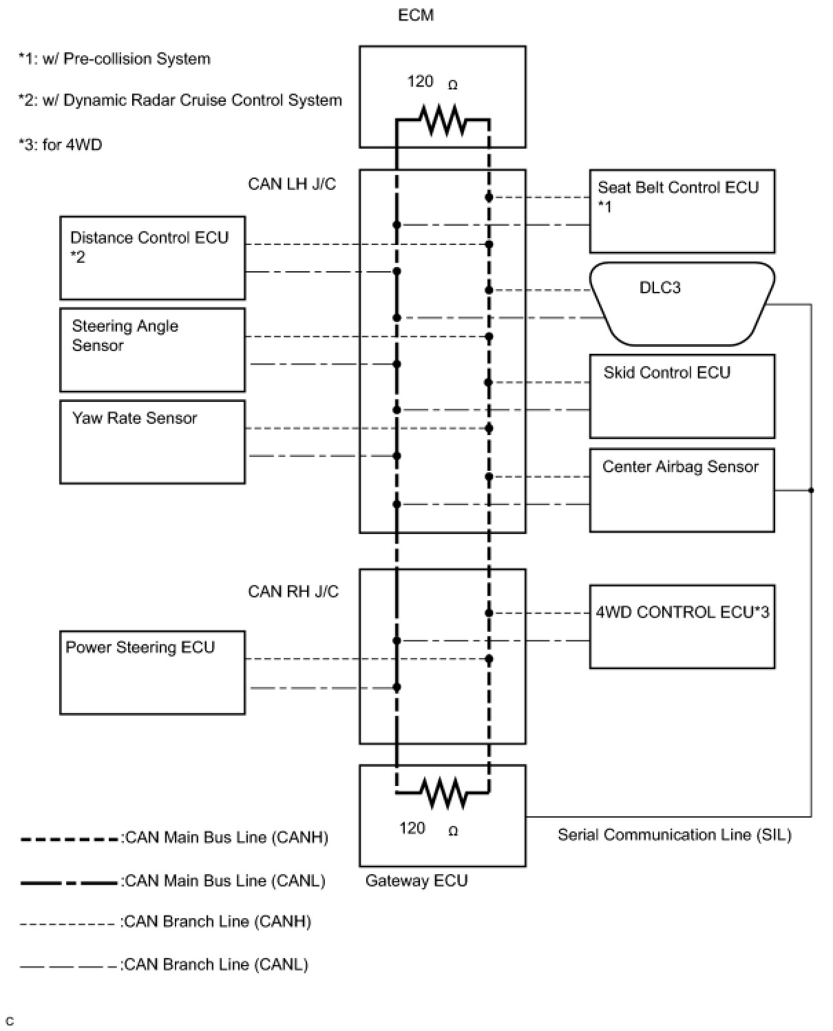 (1) The main bus line is a wire harness between the two terminating resistors on the bus (communication line). This is the main bus in the CAN communication system.