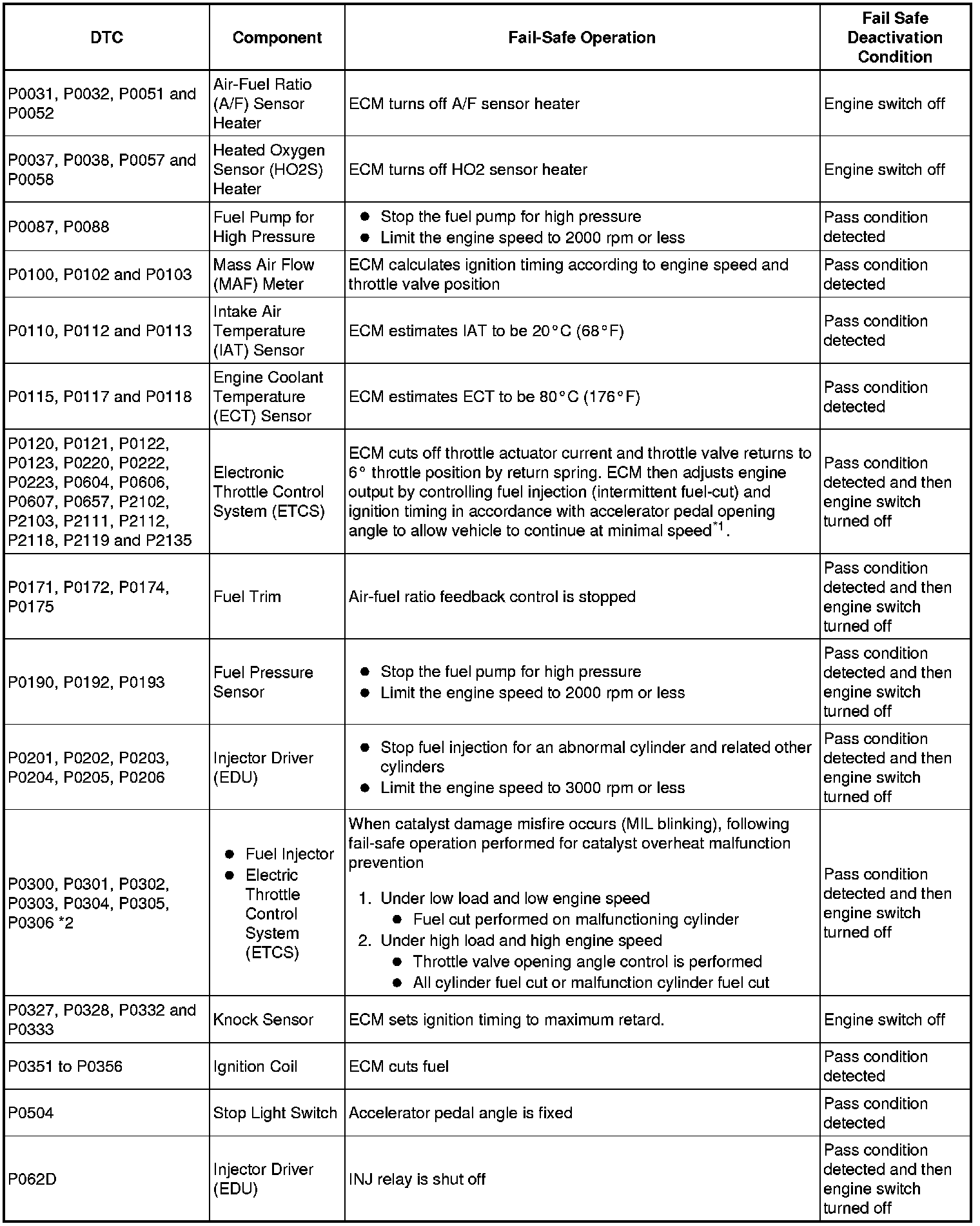 If any of the following DTCs are set, the ECM enters fail-safe mode to allow the vehicle to be driven temporarily.