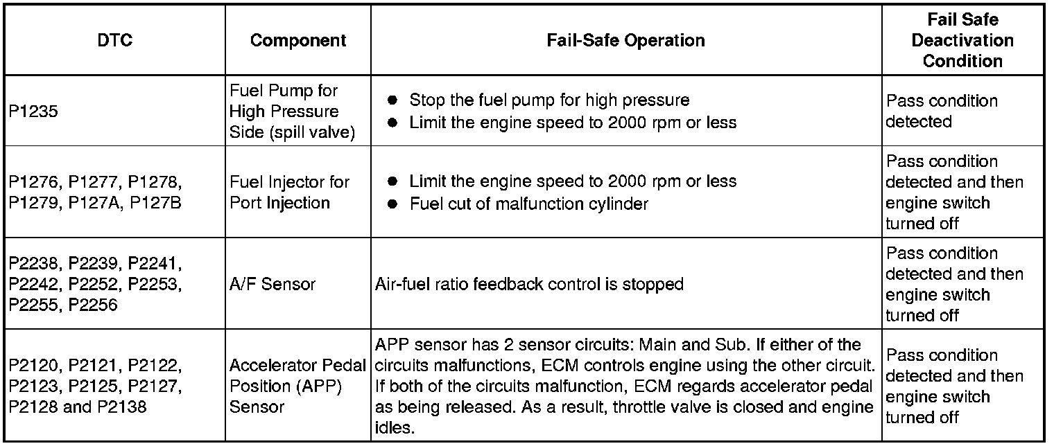 2GR-FSE ENGINE CONTROL SYSTEM: SFI SYSTEM: FAIL-SAFE CHART