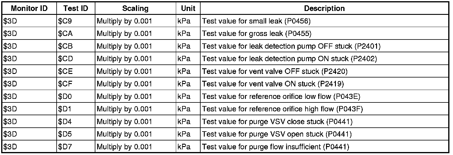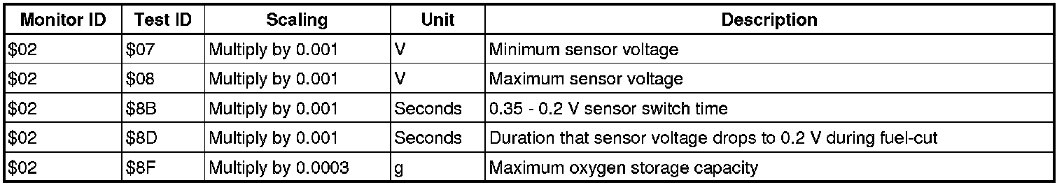 If you use a generic scan tool, multiply the value by the scaling value listed below.