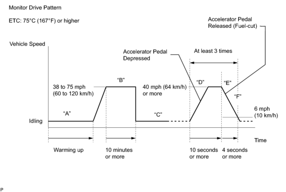 Repeat procedure "D" through "F" above at least 3 times in one driving cycle (Procedure "G").