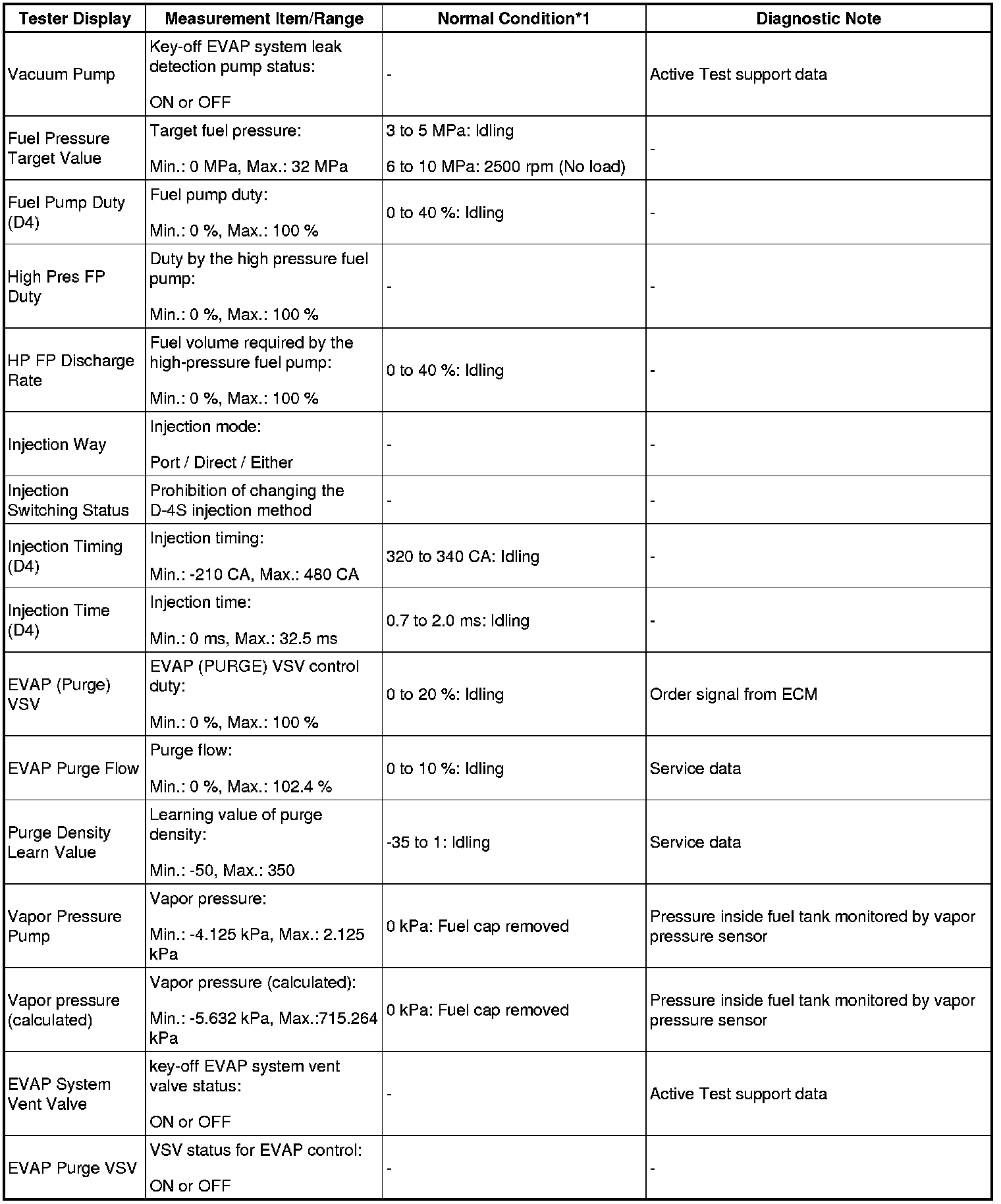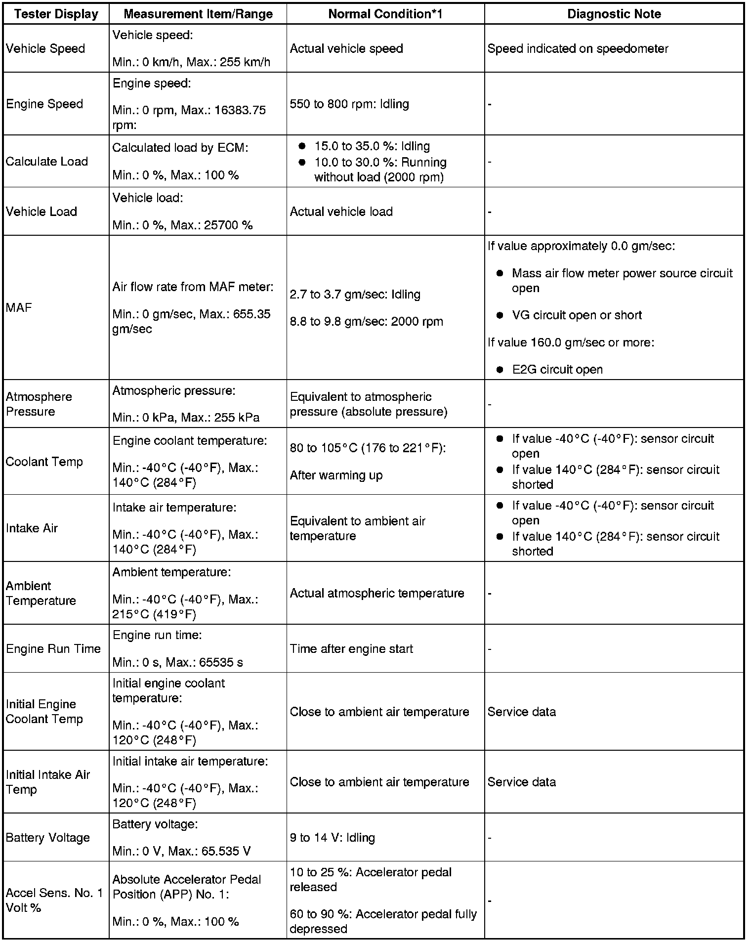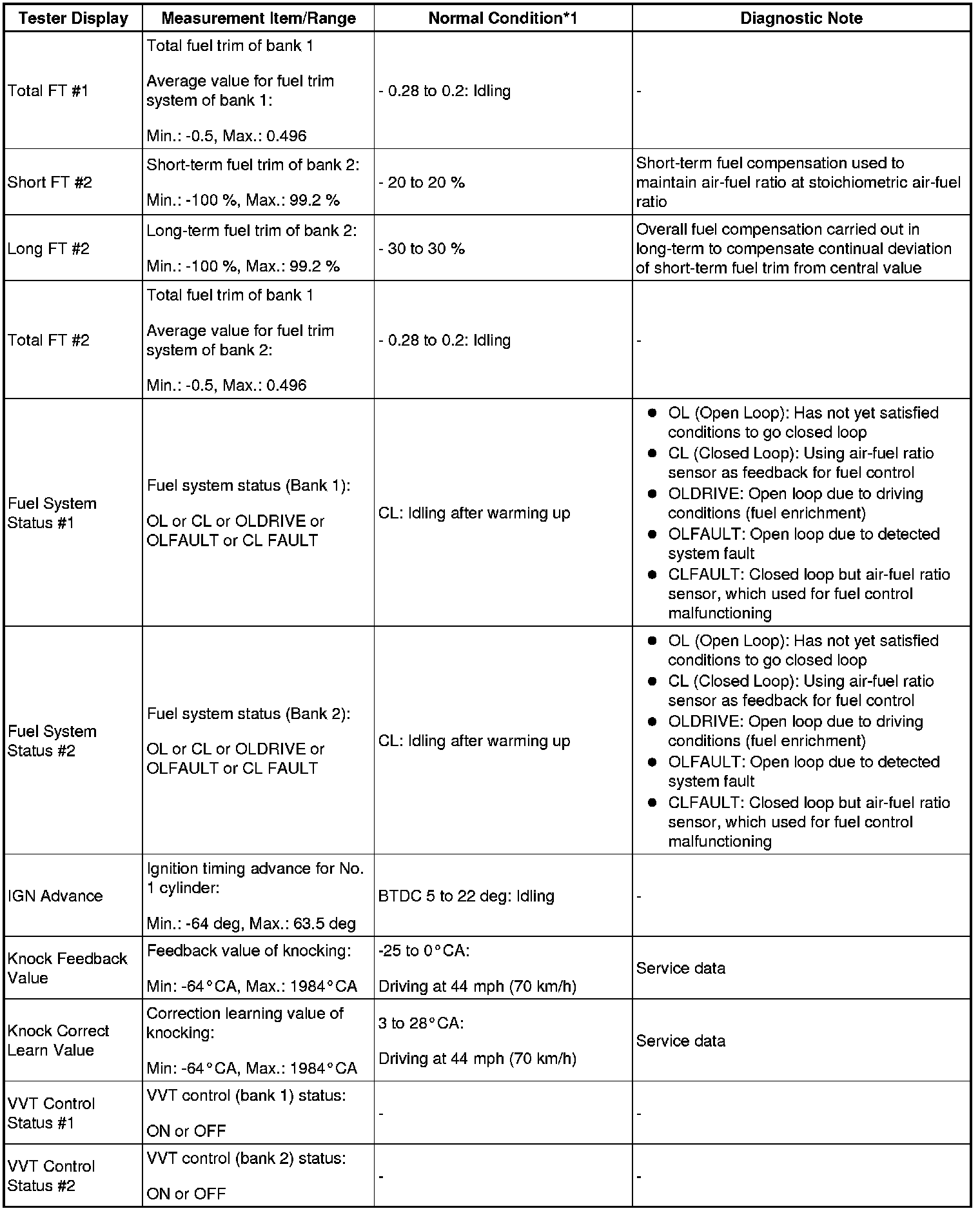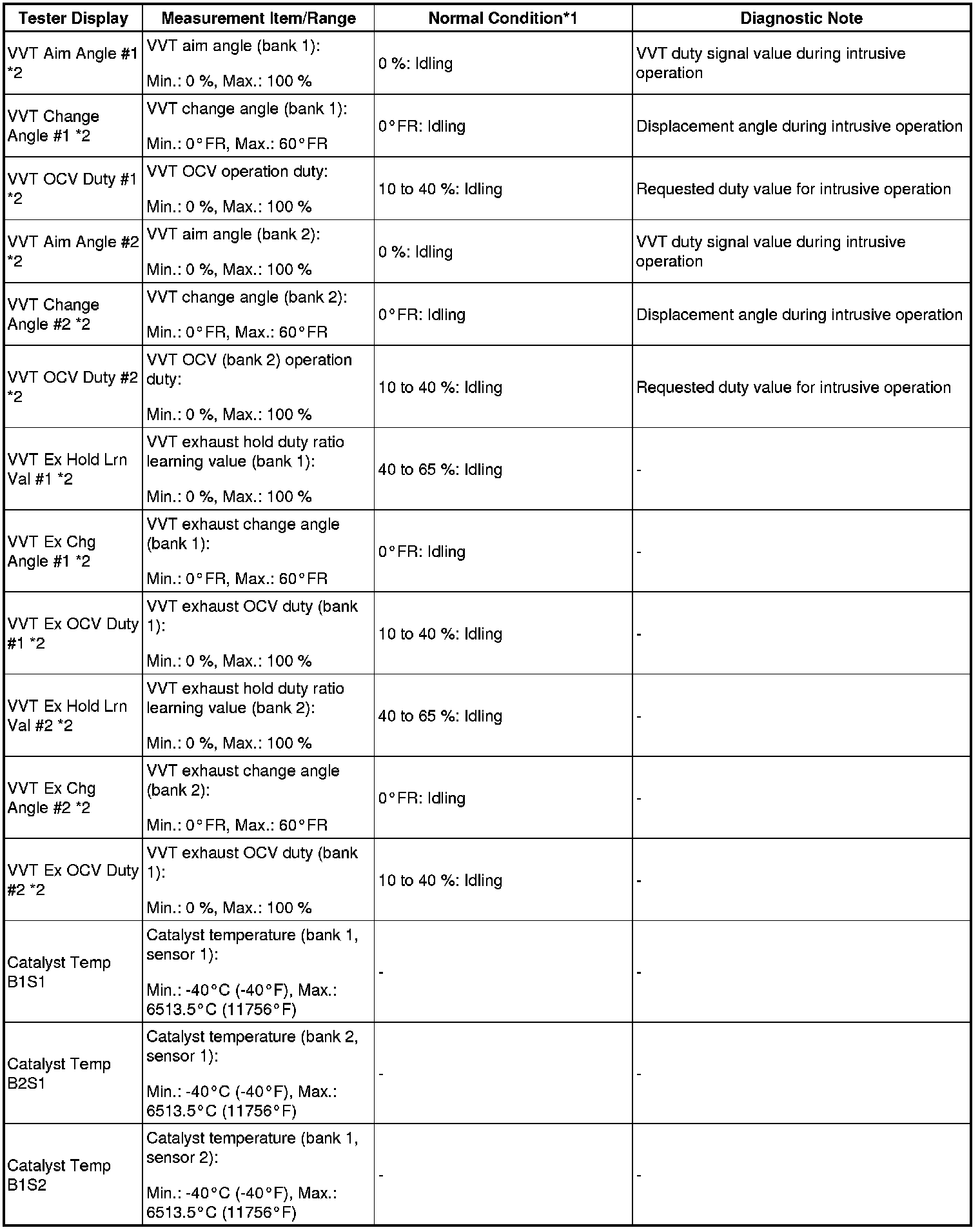 - *2: Data List values are only displayed when performing the following Active Test: Control the VVT System (Bank 1, 2), Control the VVT Linear (Bank 1, 2) For other Active Test, the Data List value will be 0.