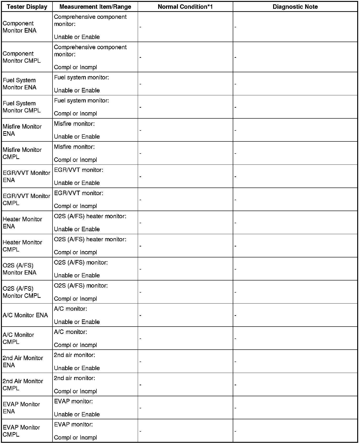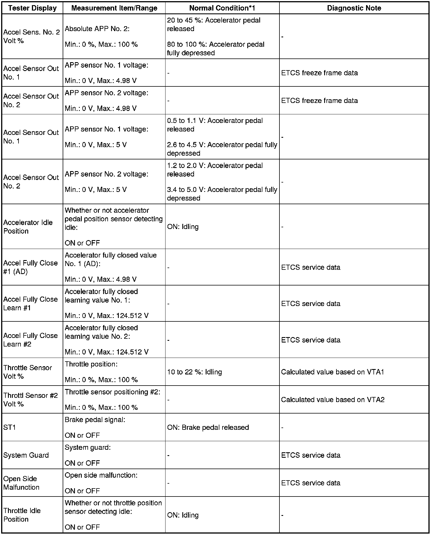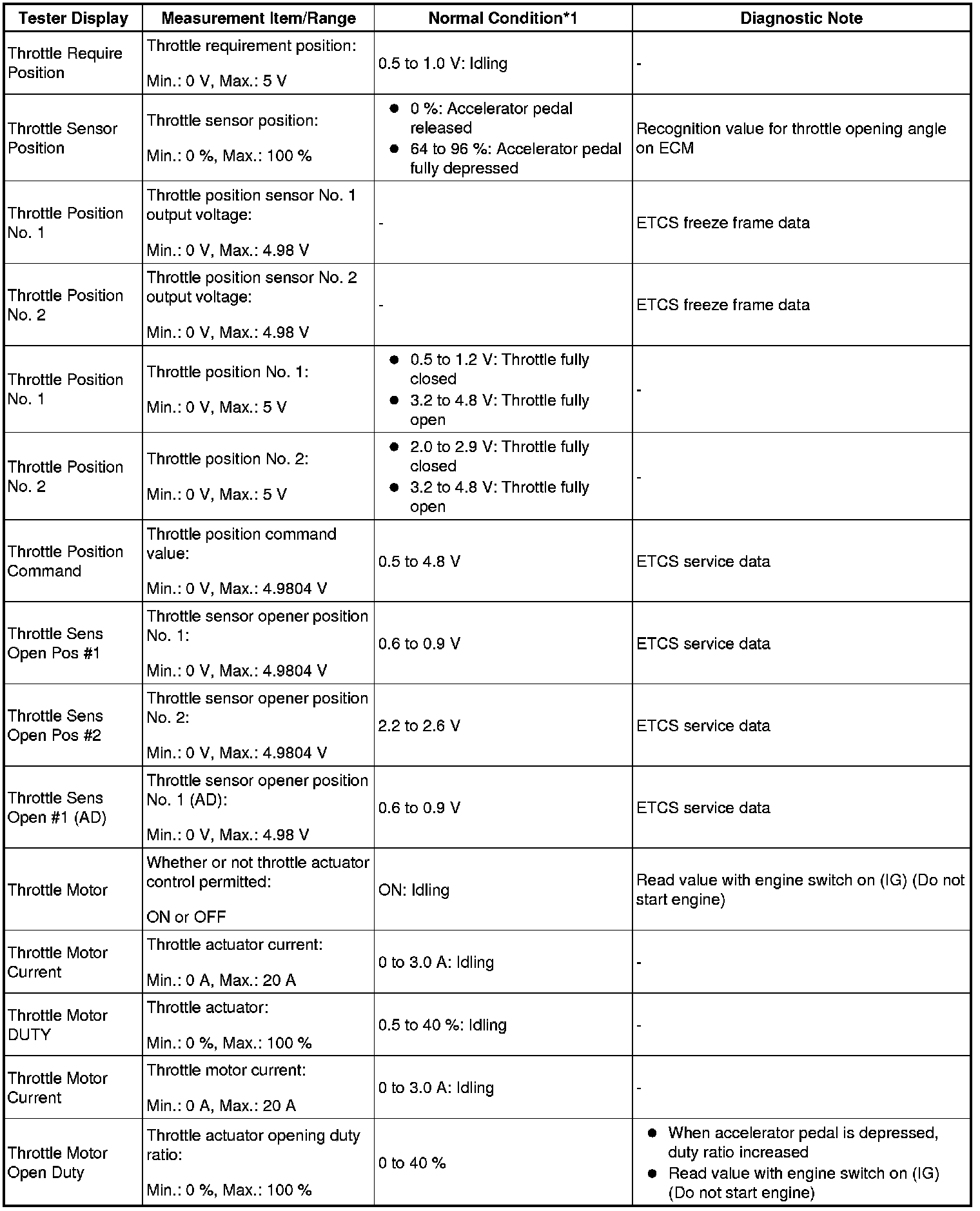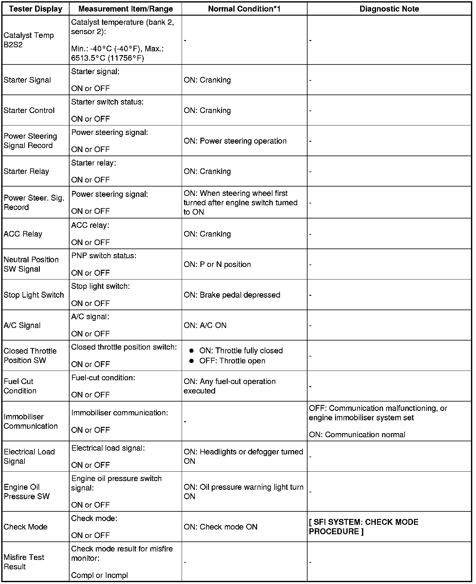 - *1: If no idling conditions are specified, the transmission gear selector lever should be in the N or P position, and the A/C switch and all accessory switches should be OFF.