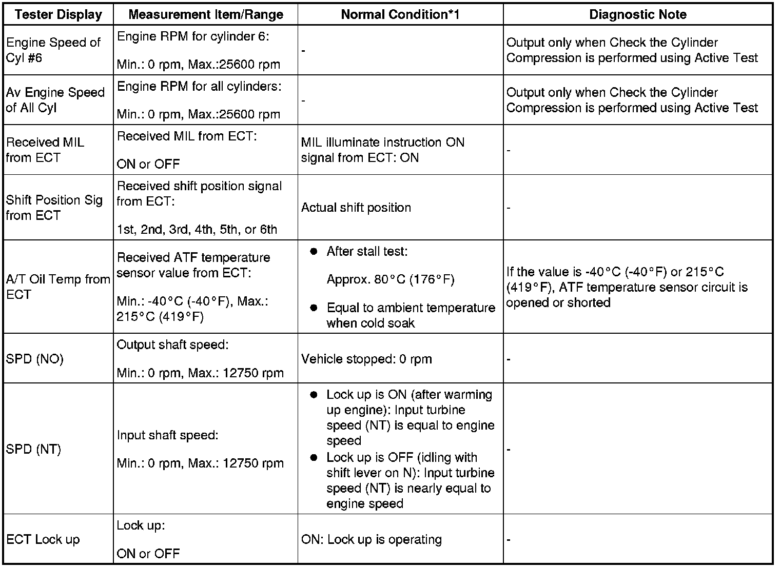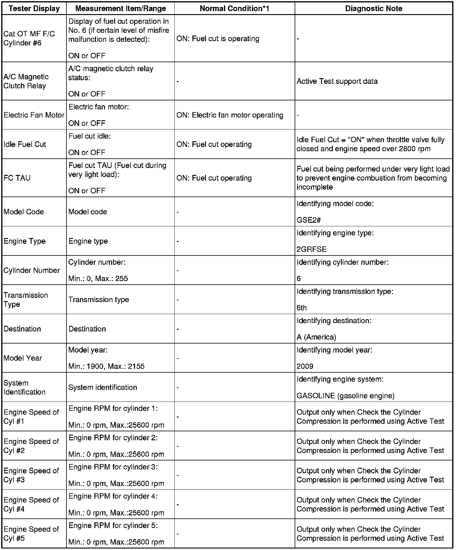 If the results are not displayed normally, select the display items from the Data List before performing the Active Test. Select the following menu items: Compression / Engine Speed of Cyl #1 to #6, Av Engine Speed of All Cyl.