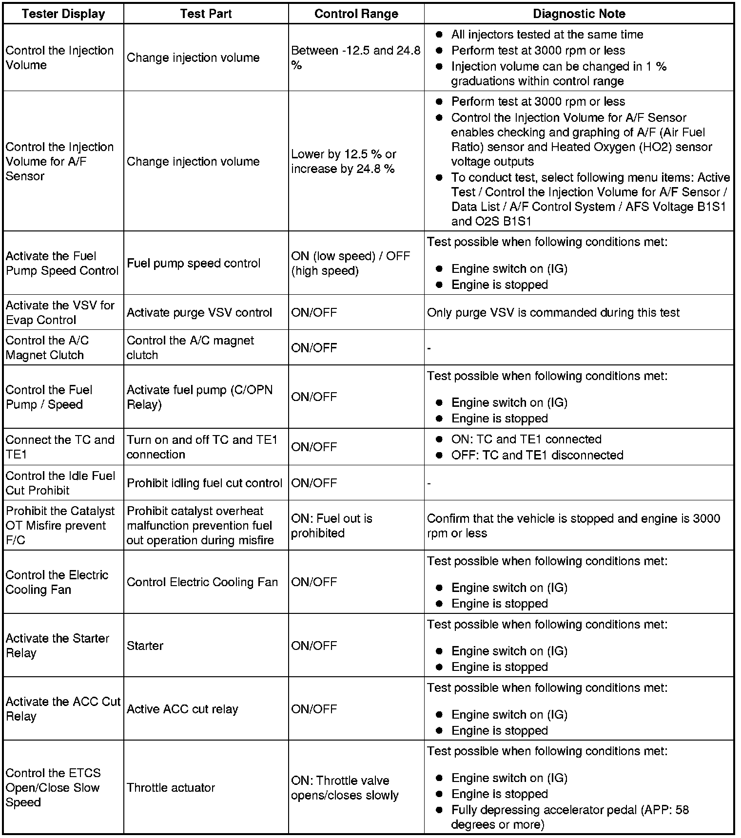 2GR-FSE ENGINE CONTROL SYSTEM: SFI SYSTEM: DATA LIST / ACTIVE TEST