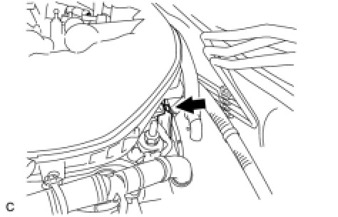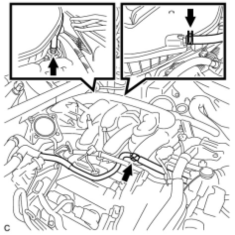 (c) Disconnect the ventilation hose, union to check valve hose and water by-pass hose from the intake air surge tank.