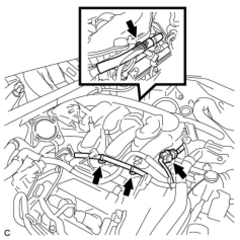 (b) Disconnect the 6 injector connectors and 2 clamps.