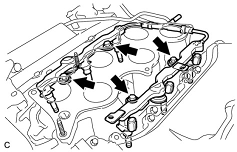 (a) Remove the 6 fuel injectors from the fuel delivery pipe sub-assembly.