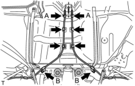 (b) Connect the 2 parking brake cables with the 4 bolts.