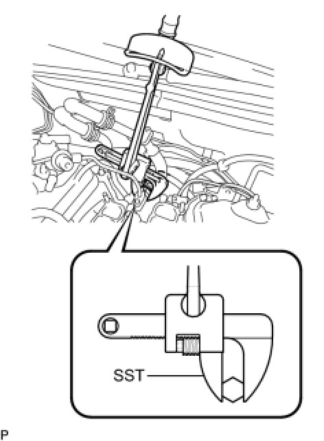 The torque for use with SST is the torque when SST is used at the position shown in the illustration.