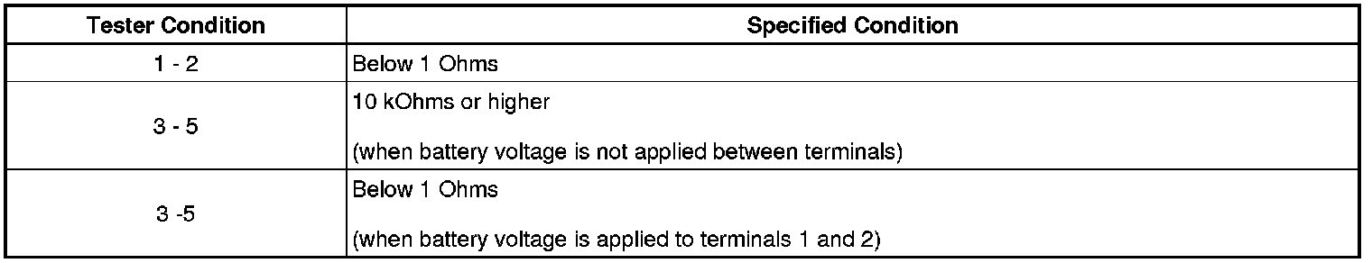 If the result is not as specified, replace the relay.