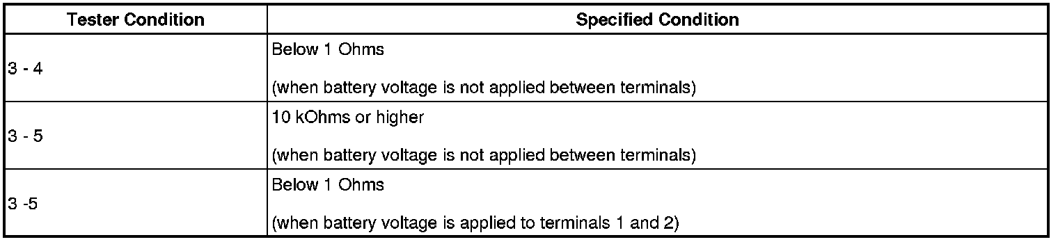 If the result is not as specified, replace the relay.