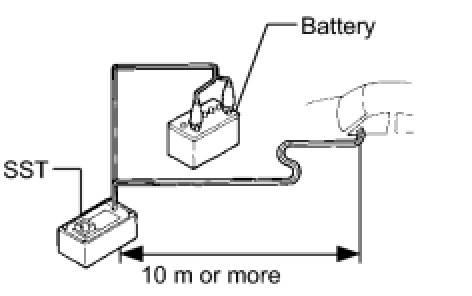 (5) Connect the red clip of the SST to the battery positive (+) terminal and the black clip of the SST to the negative (-) terminal.