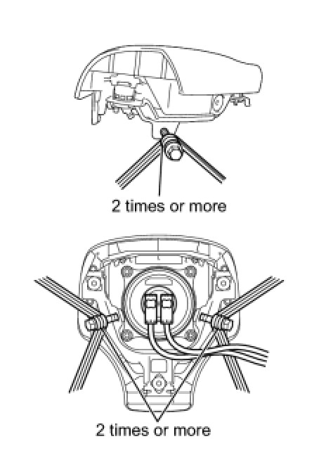 - Make sure that the wire harness is tight. If there is slack in the wire harnesses, the steering pad may become loose when the airbag is deployed.