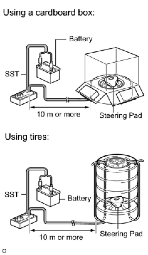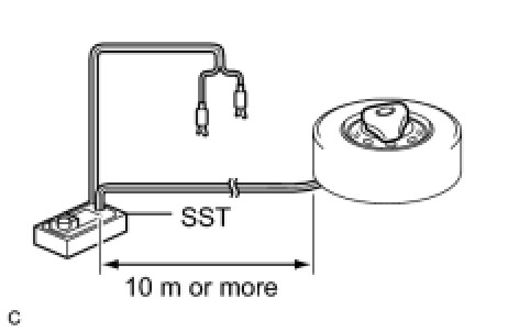 (2) Move the SST at least 10 m (33 ft.) away from the airbag tied down to the disc wheel.