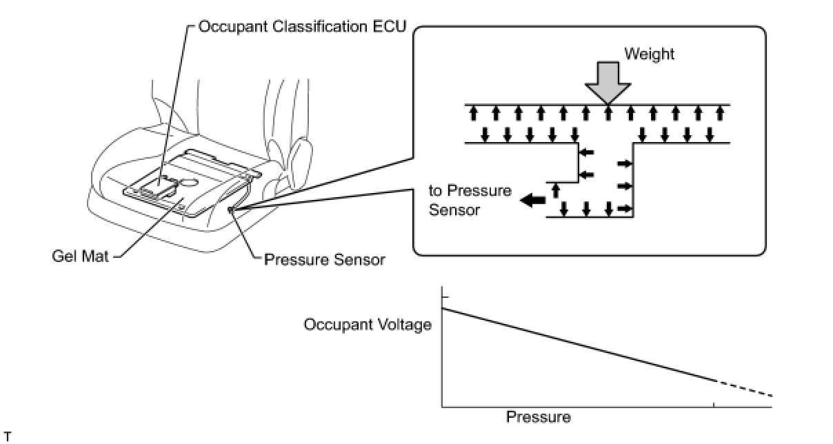 When weight is applied to the gel mat, the pressure applied through the silicone to the pressure sensor changes. The pressure sensor converts these changes into voltages and transmits them to the occupant classification ECU.