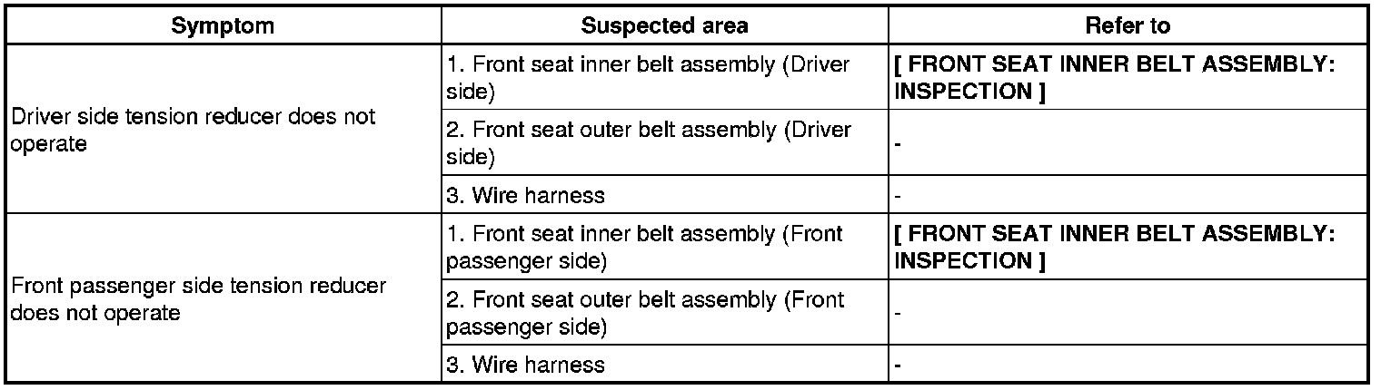 : SEAT BELT TENSION REDUCER: PROBLEM SYMPTOMS TABLE