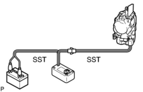 (2) Connect the red clip of the SST to the battery positive (+) terminal and the black clip to the battery negative (-) terminal.