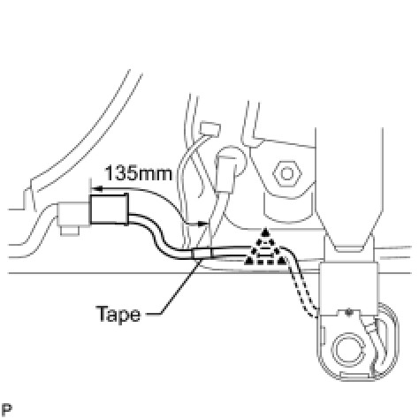 - Set the taped position of wire harness at the front of the clamp on the vehicle body.