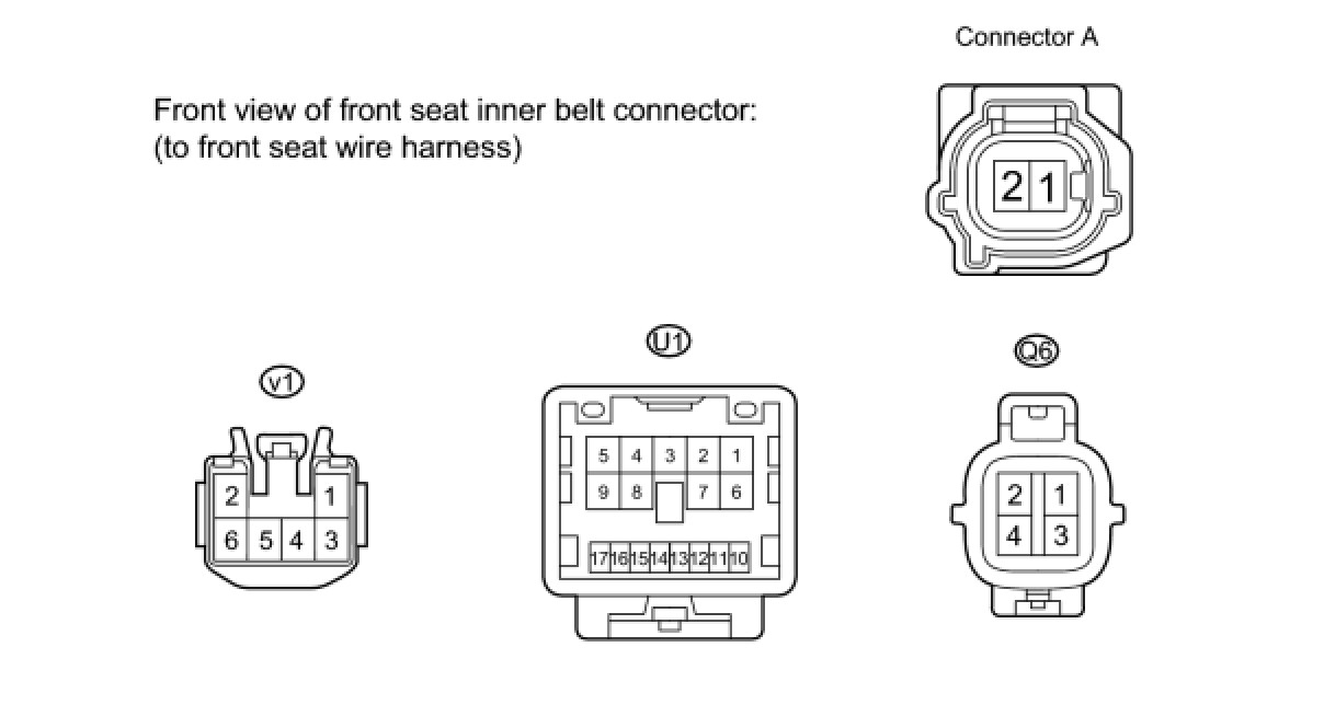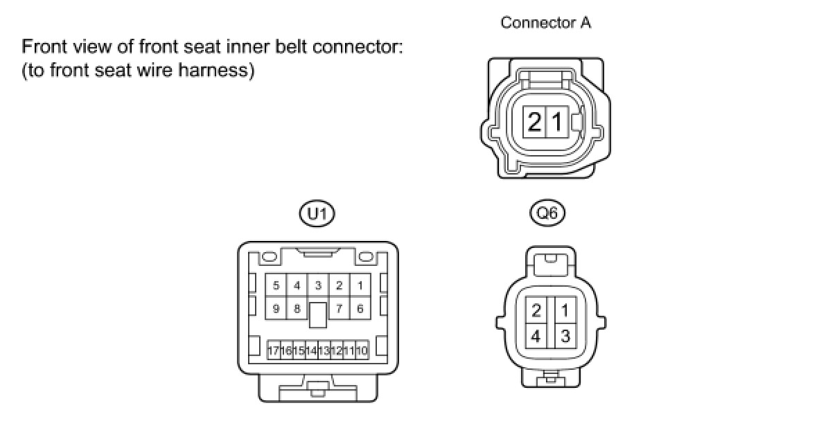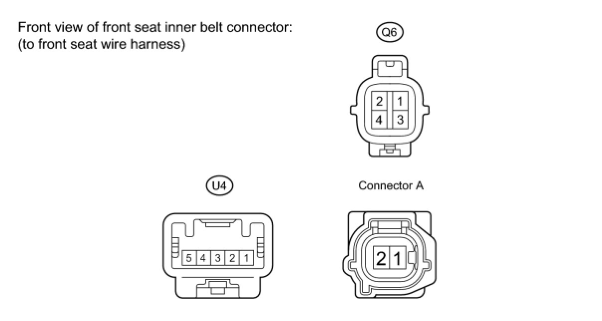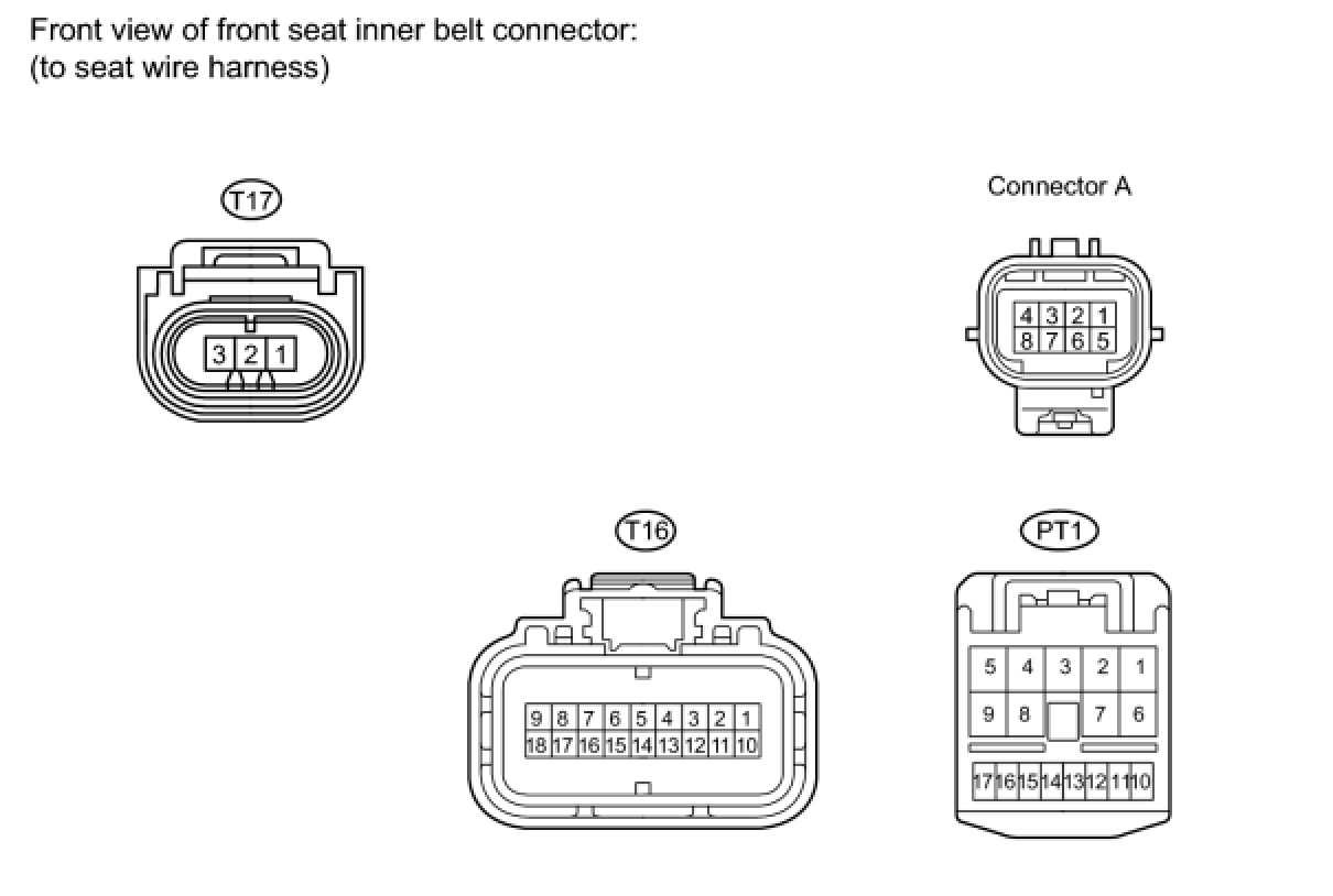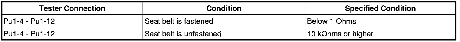 (2) Measure the resistance between the terminals of the front seat inner belt assembly.