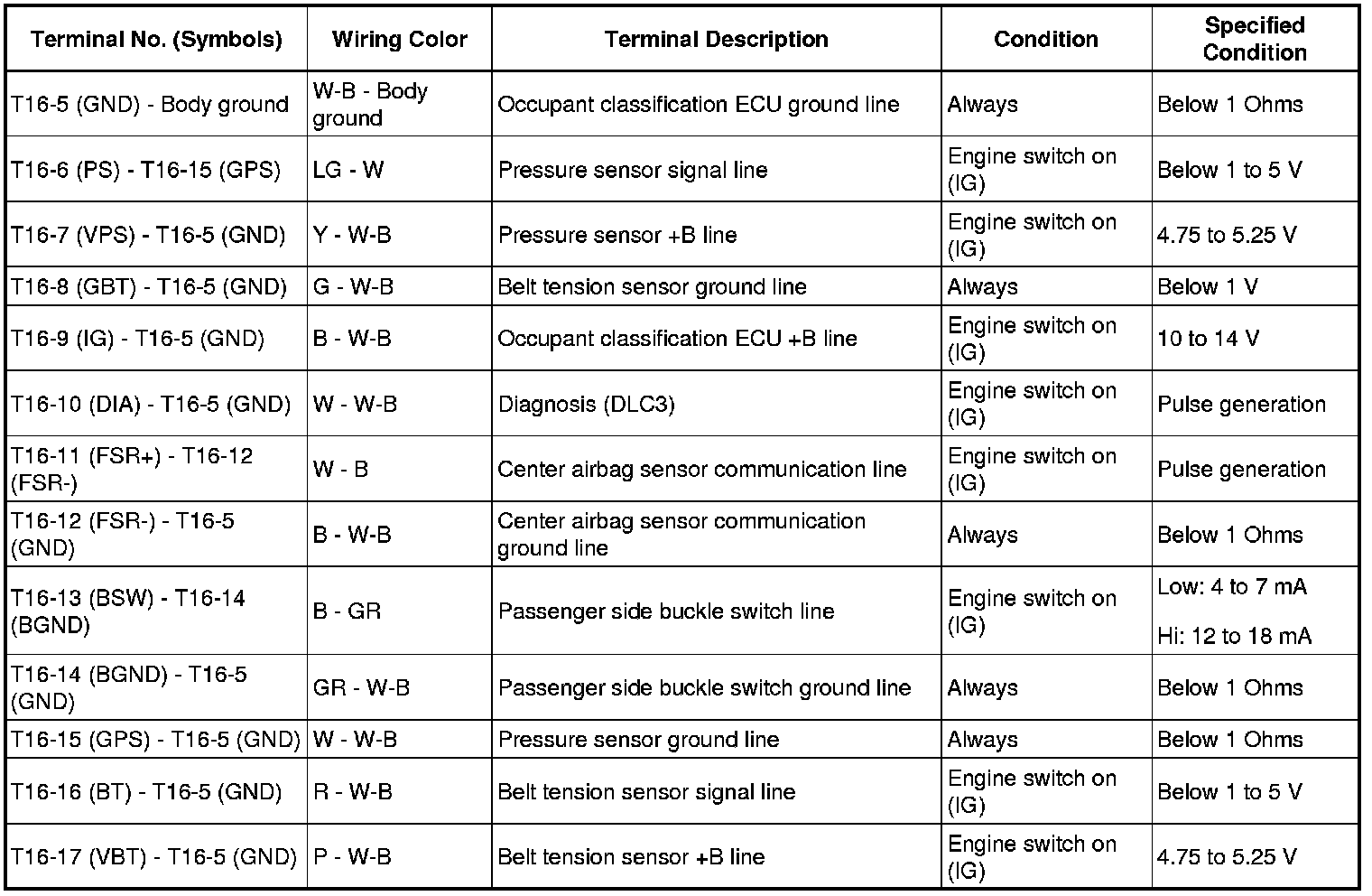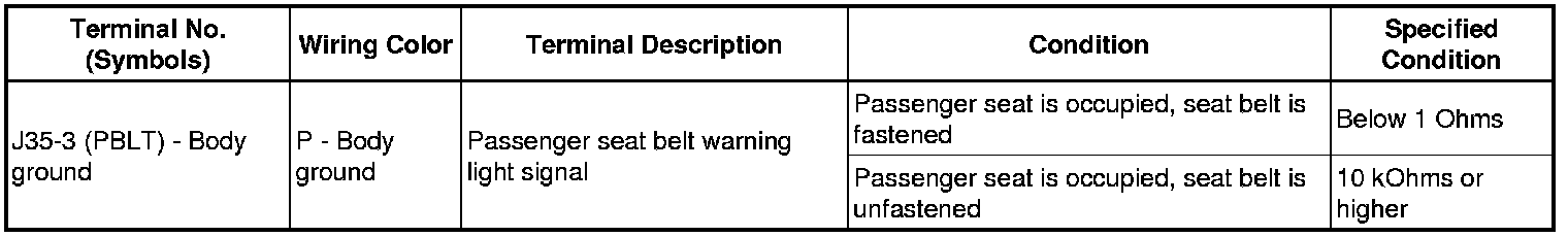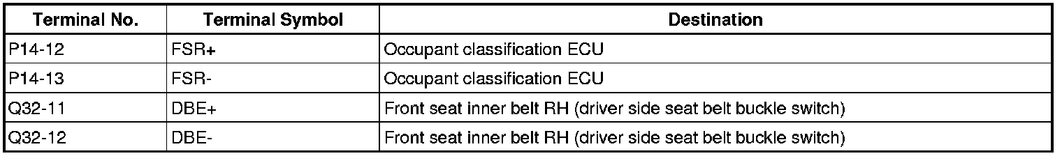 SEAT BELT: SEAT BELT WARNING SYSTEM (w/ Occupant Classification System): TERMINALS OF ECU