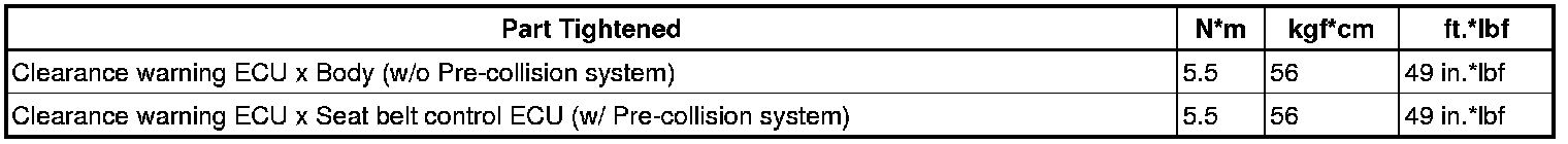 SERVICE SPECIFICATIONS: PARK ASSIST / MONITORING: TORQUE SPECIFICATIONS