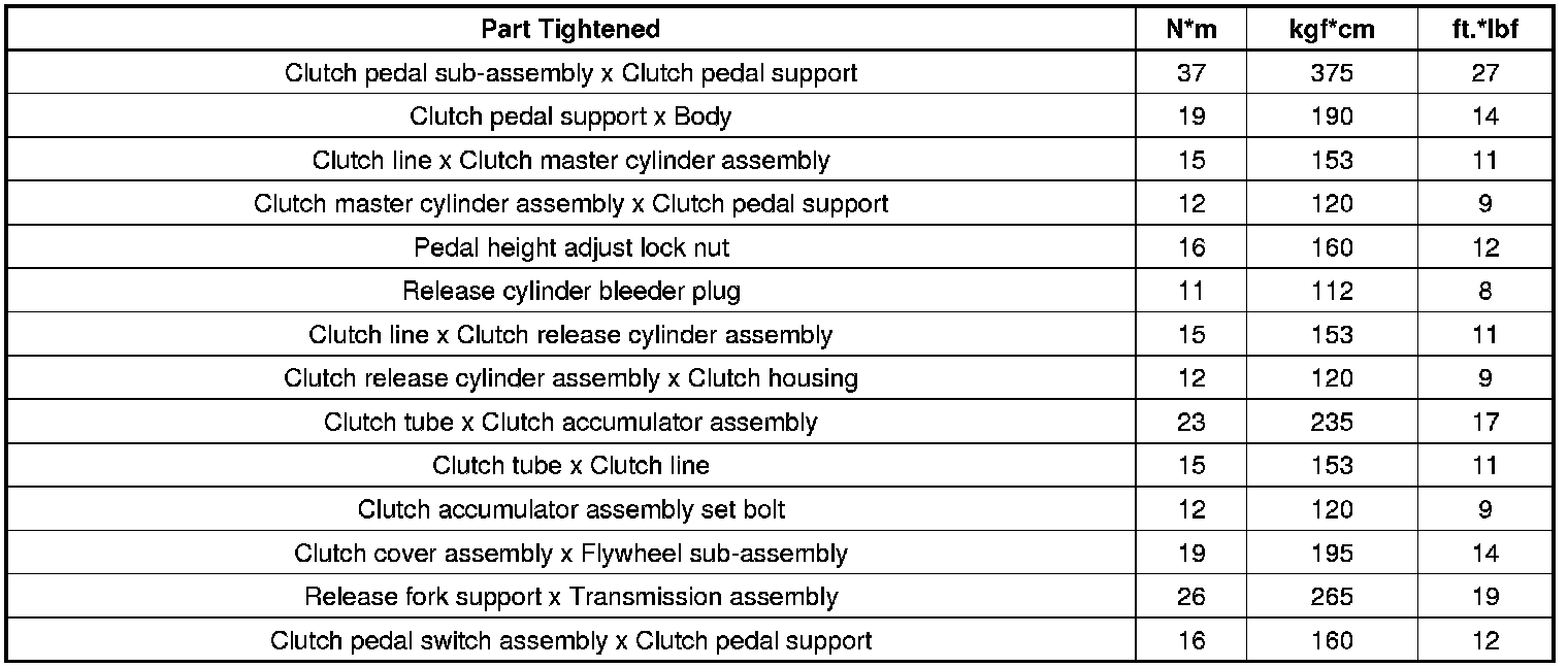 SERVICE SPECIFICATIONS: CLUTCH: TORQUE SPECIFICATIONS